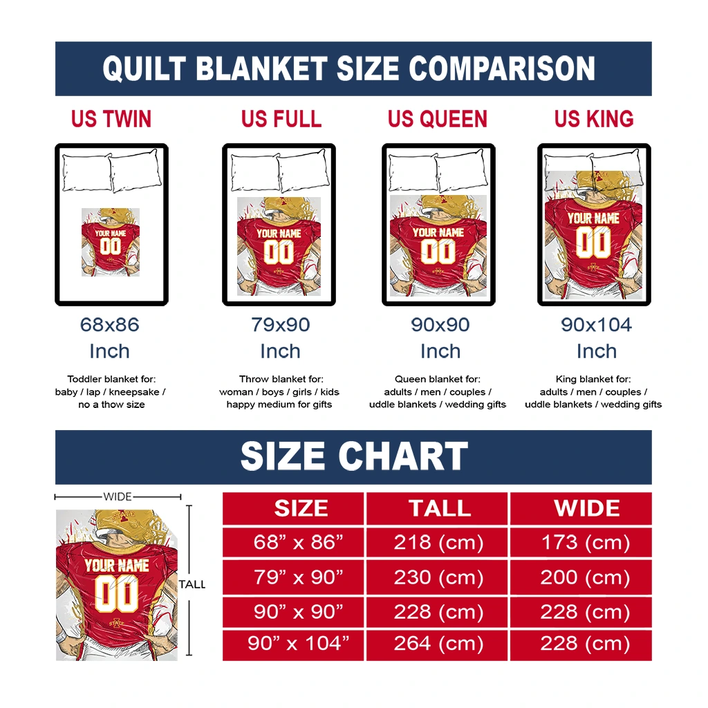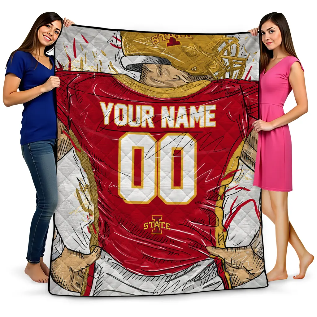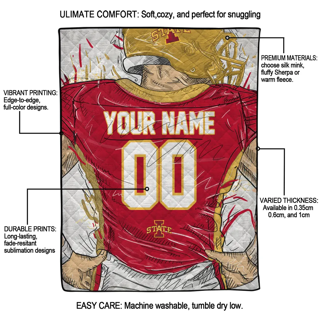 Wrap yourself in warmth and pride with the Personalized Iowa State Cyclones Player Sketch Red Gray Quilt Blanket from the Iowa State Cyclones Blankets collection at Yes That Blanket. Made from 100% premium quilting-weight polyester blended with a touch of microfiber, this quilt offers a smooth, soft finish you’ll love. Choose between two quilting styles—Stipple or Diagonal—and enjoy the comfort of a cotton-filled layer inside that adds extra coziness for every season. The border is available in classic black or white, giving your design a clean, timeless edge.