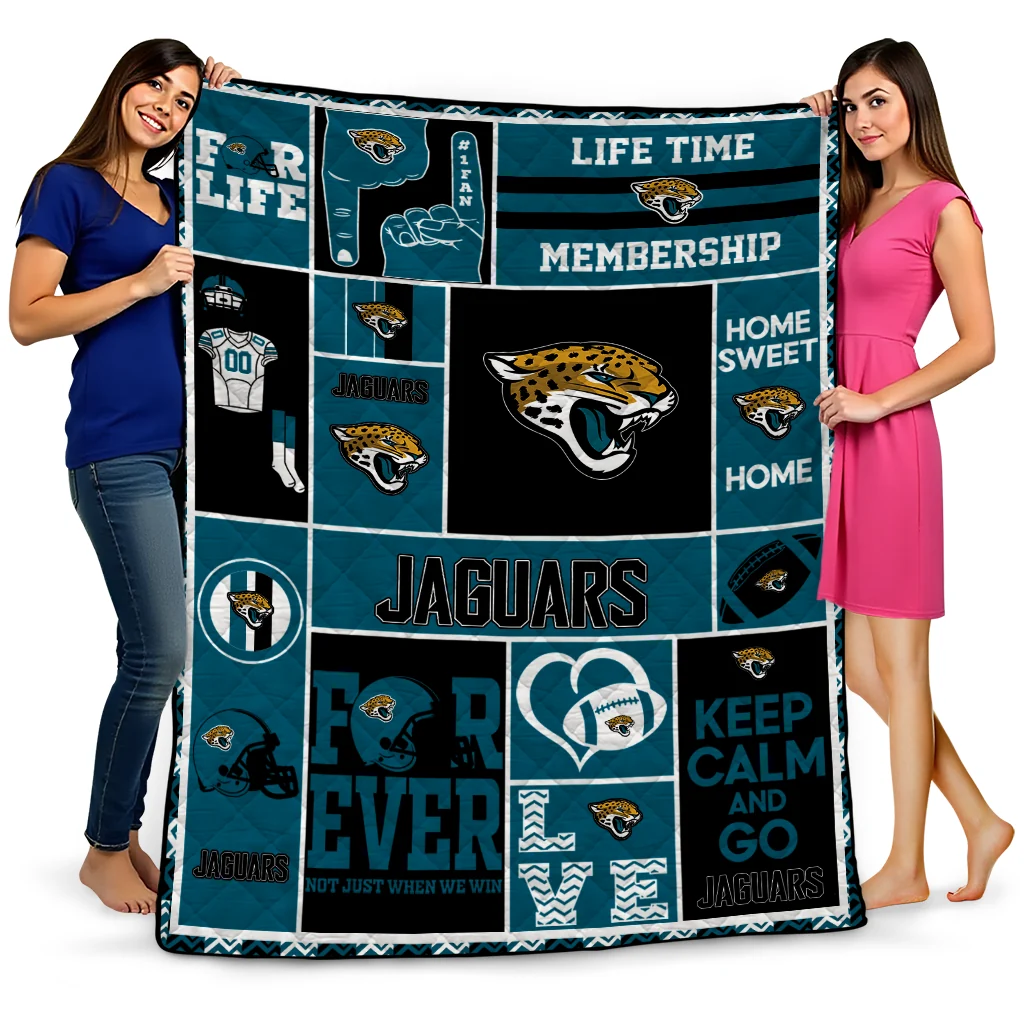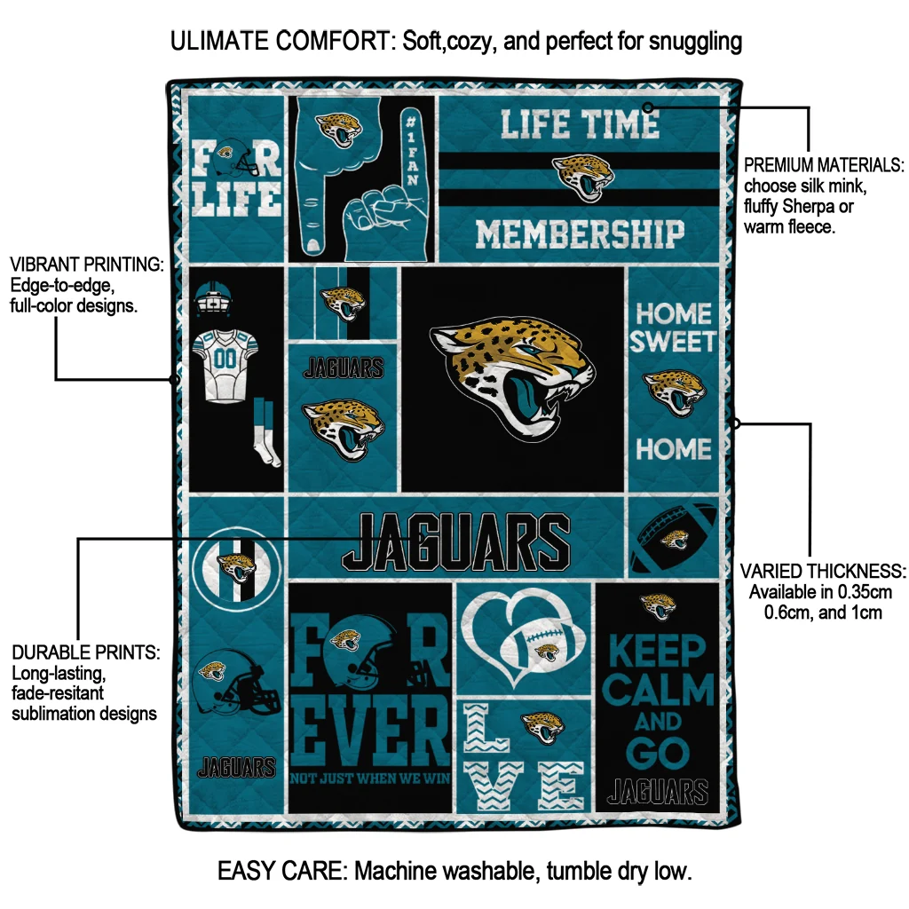 The Personalized Jacksonville Jaguars Helmet Passion Teal Quilt Blanket is more than a blanket—it’s everyday comfort, thoughtfully made. Crafted from premium quilting fabric with a soft microfiber touch, it offers a smooth hand-feel and lasting coziness. Layered quilting with a cotton-filled core provides adaptable warmth across seasons while maintaining a clean, tailored look on your bed or sofa.