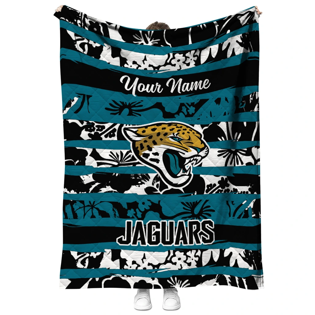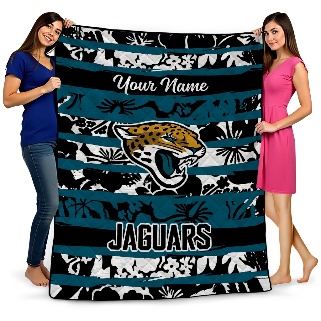 Personalized Jacksonville Jaguars Layered Florals Teal White Quilt Blanket