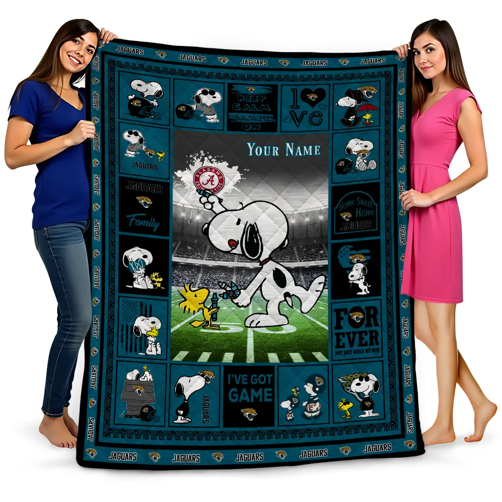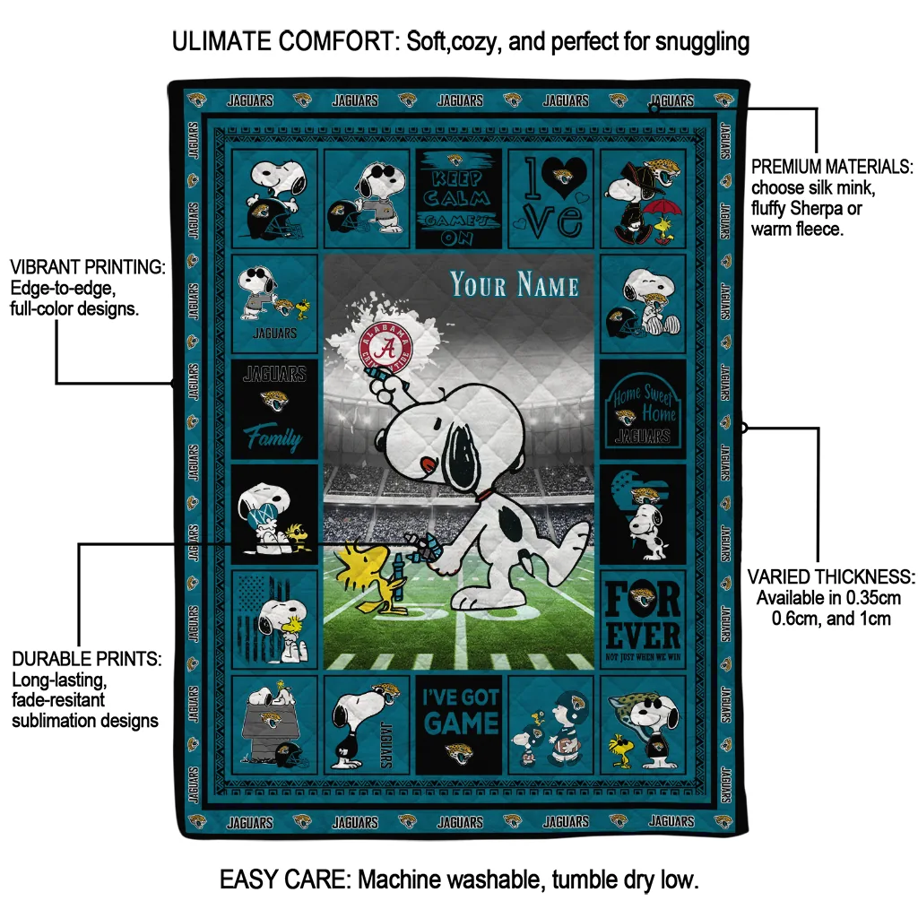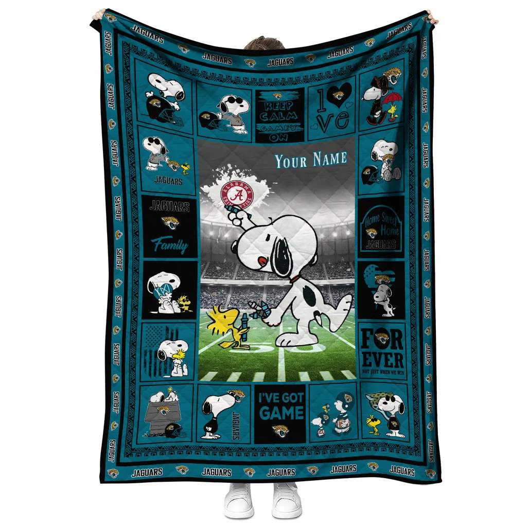 Personalized Jacksonville Jaguars Snoopy Coach Teal Quilt Blanket