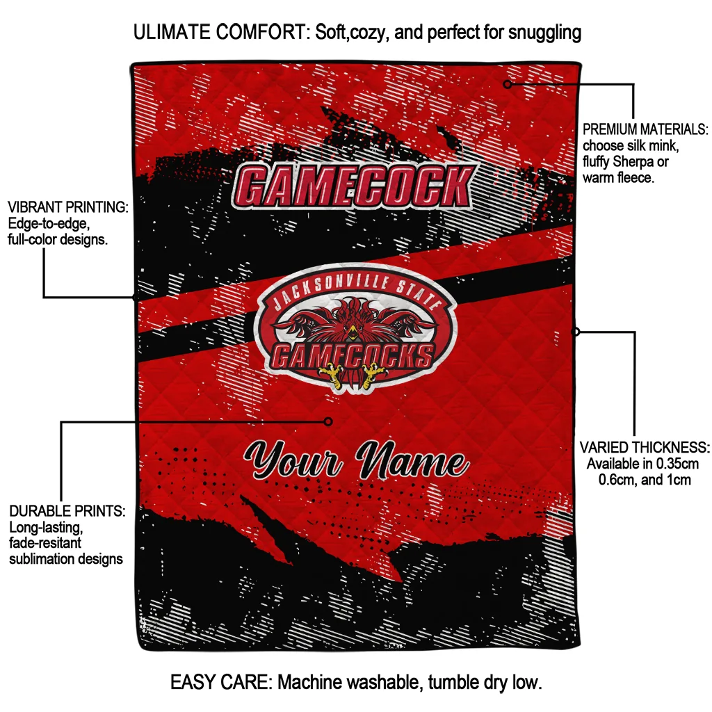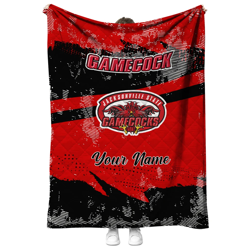 Wrap yourself in warmth and pride with the Personalized Jacksonville State Gamecocks Brushstroke Layers Red Quilt Blanket from the Jacksonville State Gamecocks Blankets collection at Yes That Blanket. Made from 100% premium quilting-weight polyester blended with a touch of microfiber, this quilt offers a smooth, soft finish you’ll love. Choose between two quilting styles—Stipple or Diagonal—and enjoy the comfort of a cotton-filled layer inside that adds extra coziness for every season. The border is available in classic black or white, giving your design a clean, timeless edge.