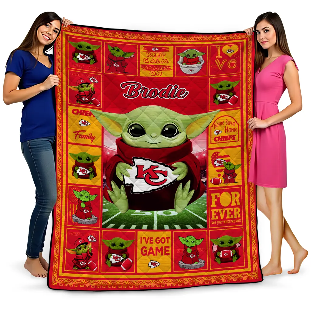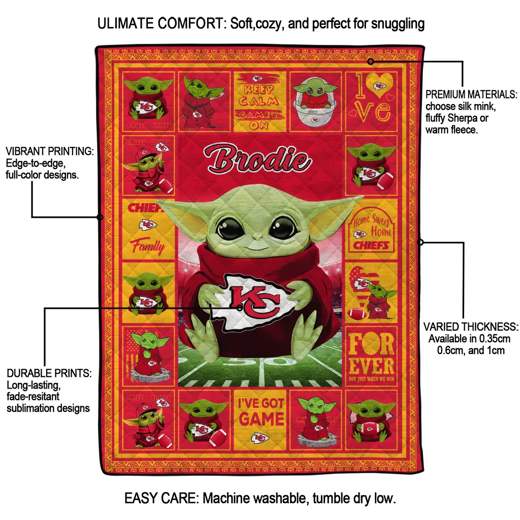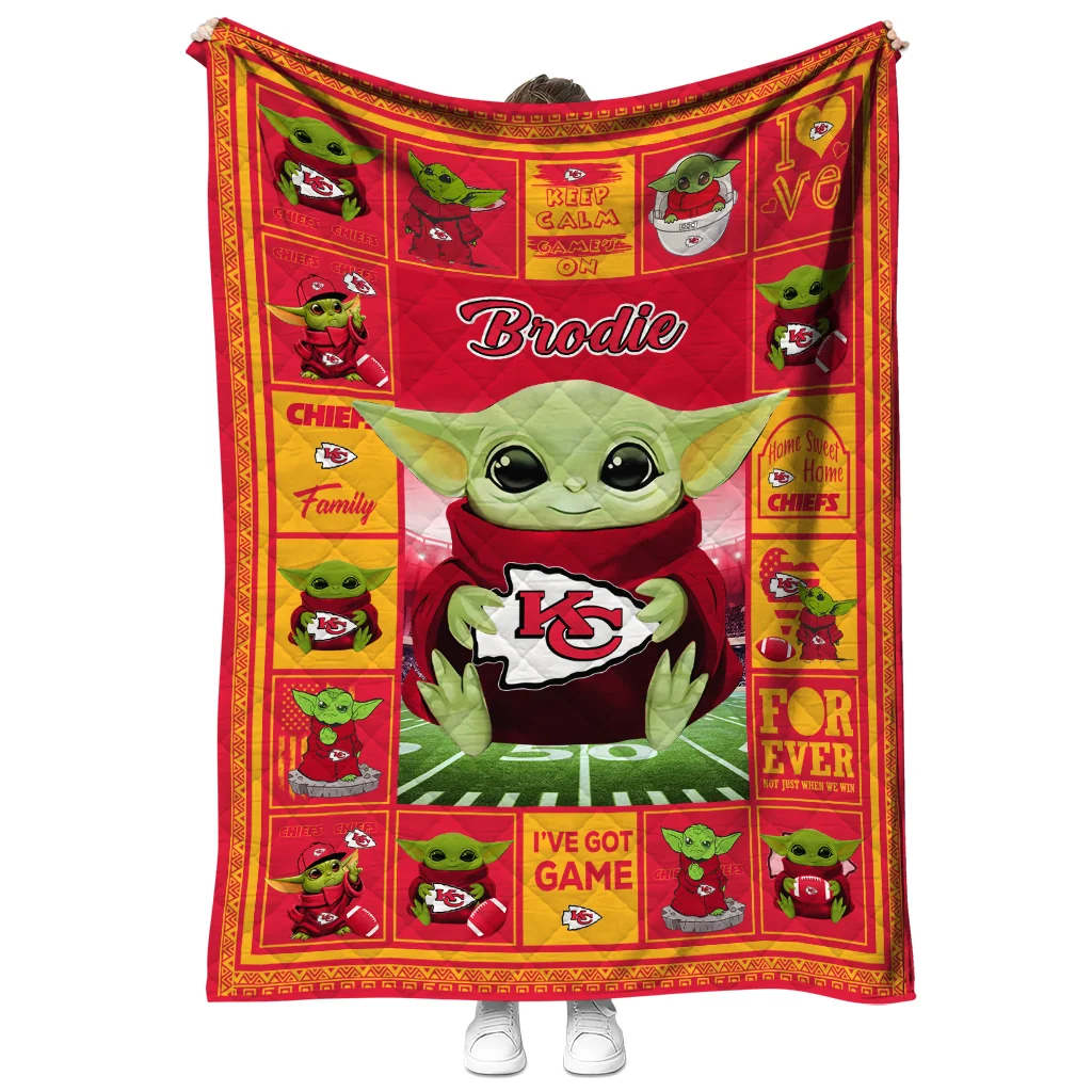 Personalized Kansas City Chiefs Yody Baby Pattern Red Quilt Blanket