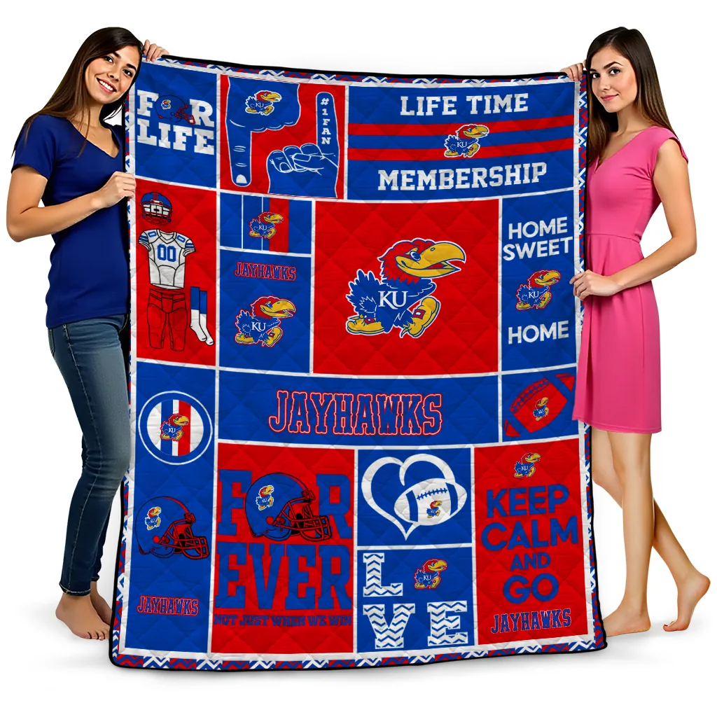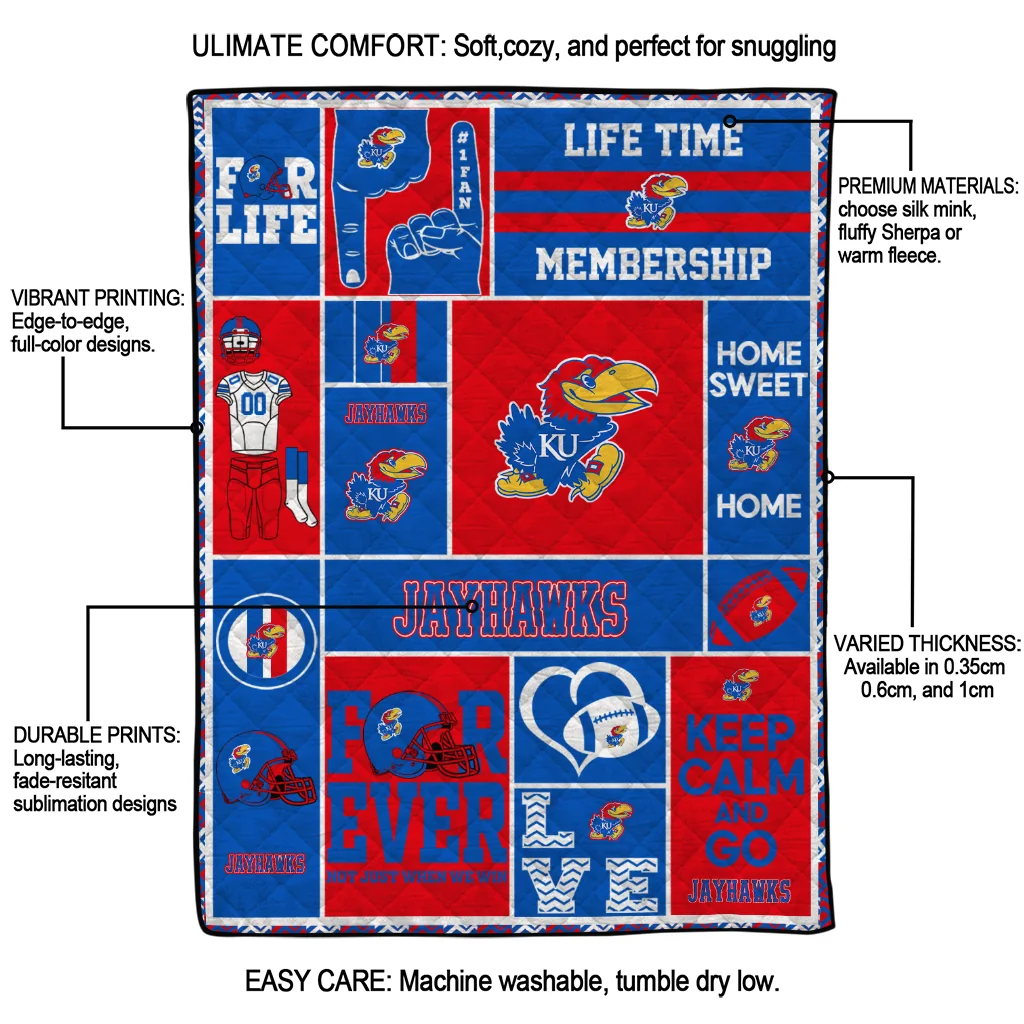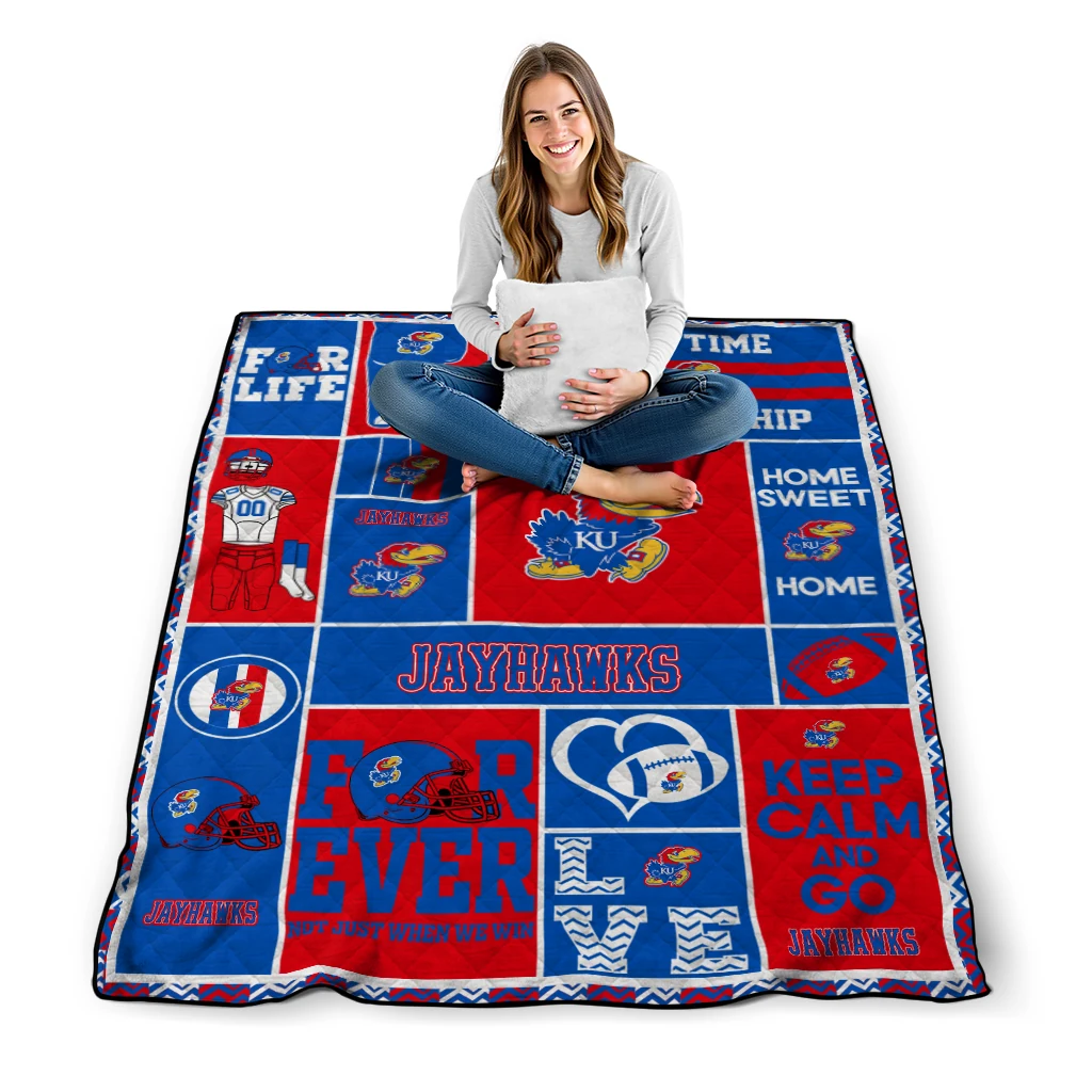 The Personalized Kansas Jayhawks Helmet Passion Blue Quilt Blanket is more than a blanket—it’s everyday comfort, thoughtfully made. Crafted from premium quilting fabric with a soft microfiber touch, it offers a smooth hand-feel and lasting coziness. Layered quilting with a cotton-filled core provides adaptable warmth across seasons while maintaining a clean, tailored look on your bed or sofa.