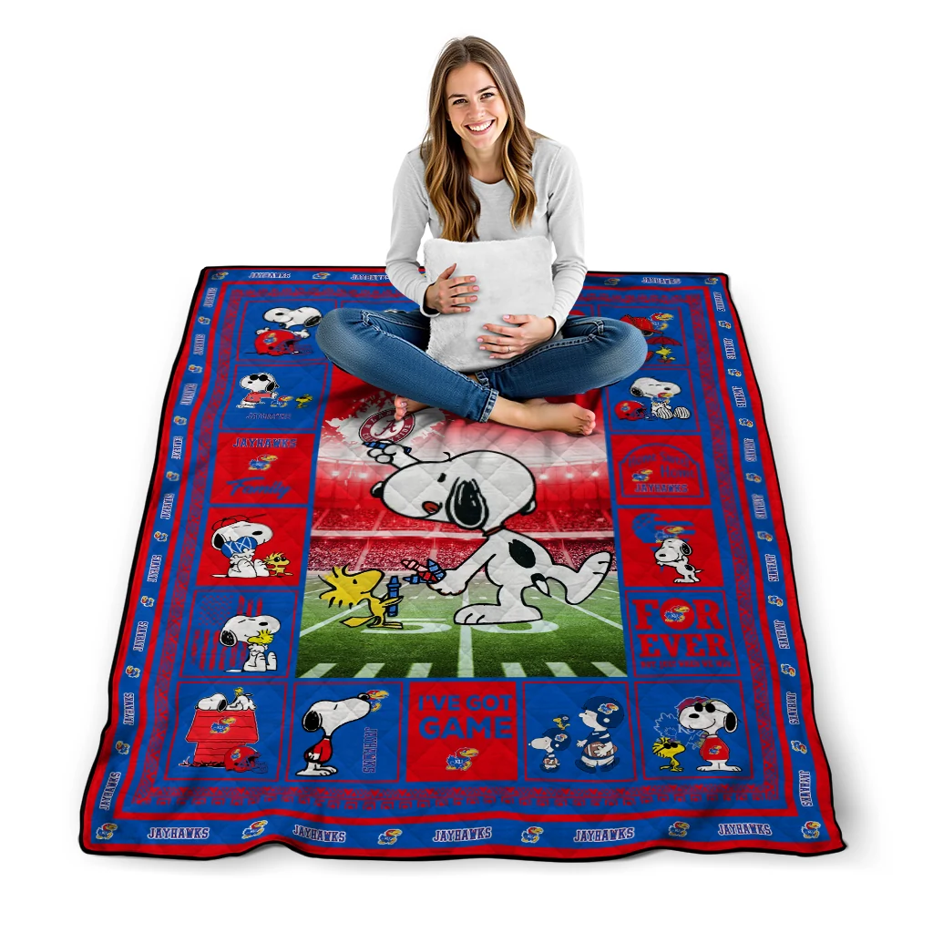 The Personalized Kansas Jayhawks Snoopy Coach Blue Quilt Blanket is more than a blanket—it’s everyday comfort, thoughtfully made. Crafted from premium quilting fabric with a soft microfiber touch, it offers a smooth hand-feel and lasting coziness. Layered quilting with a cotton-filled core provides adaptable warmth across seasons while maintaining a clean, tailored look on your bed or sofa.