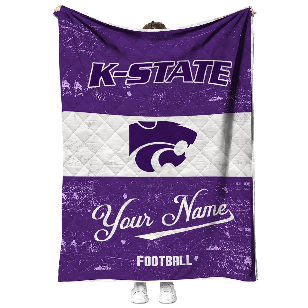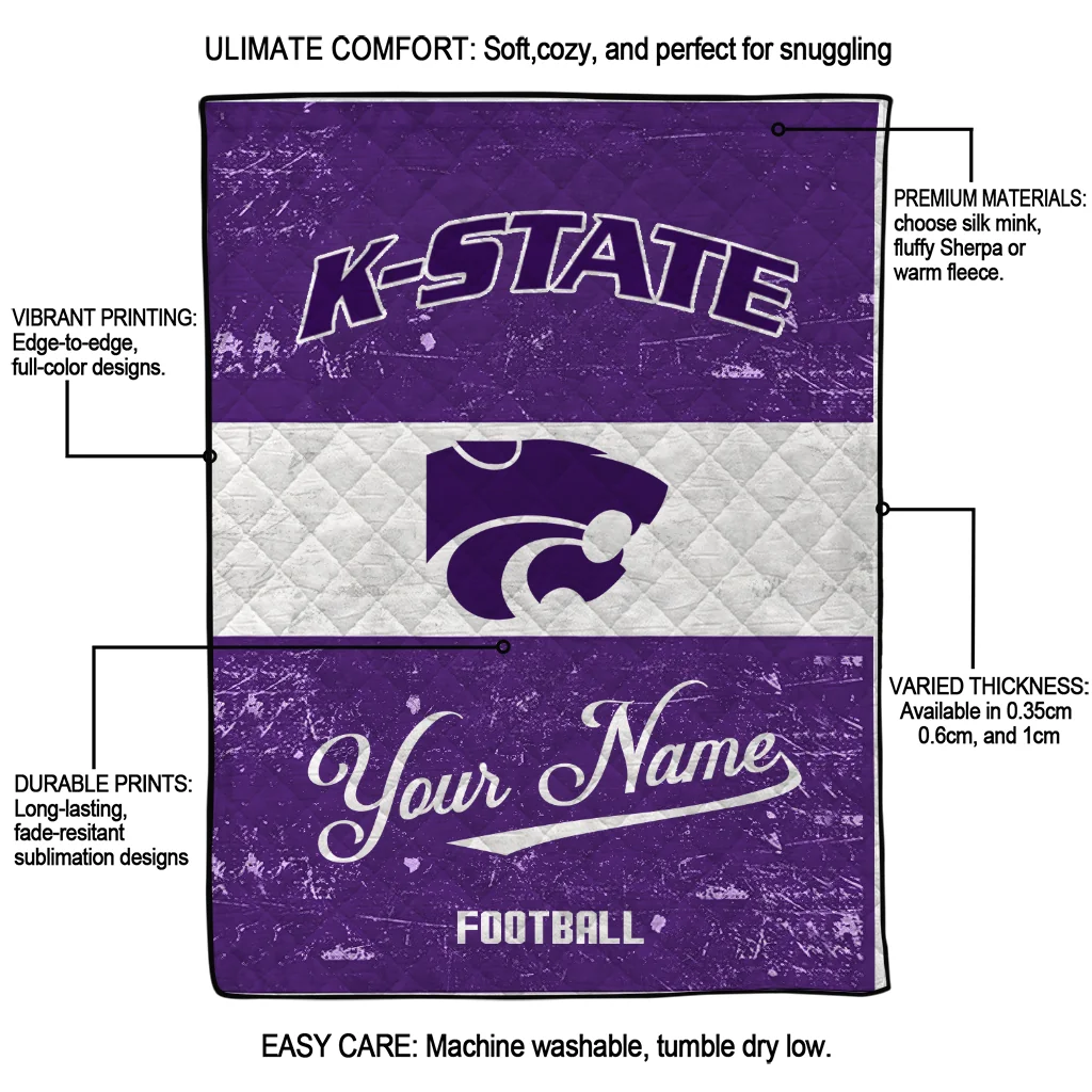 Personalized Kansas State Wildcats Hibiscus Burst Purple White Quilt Blanket