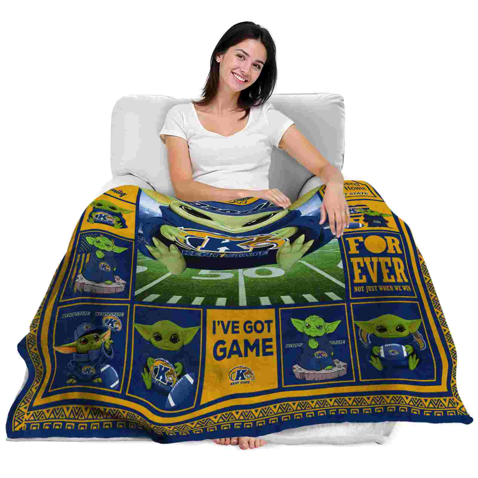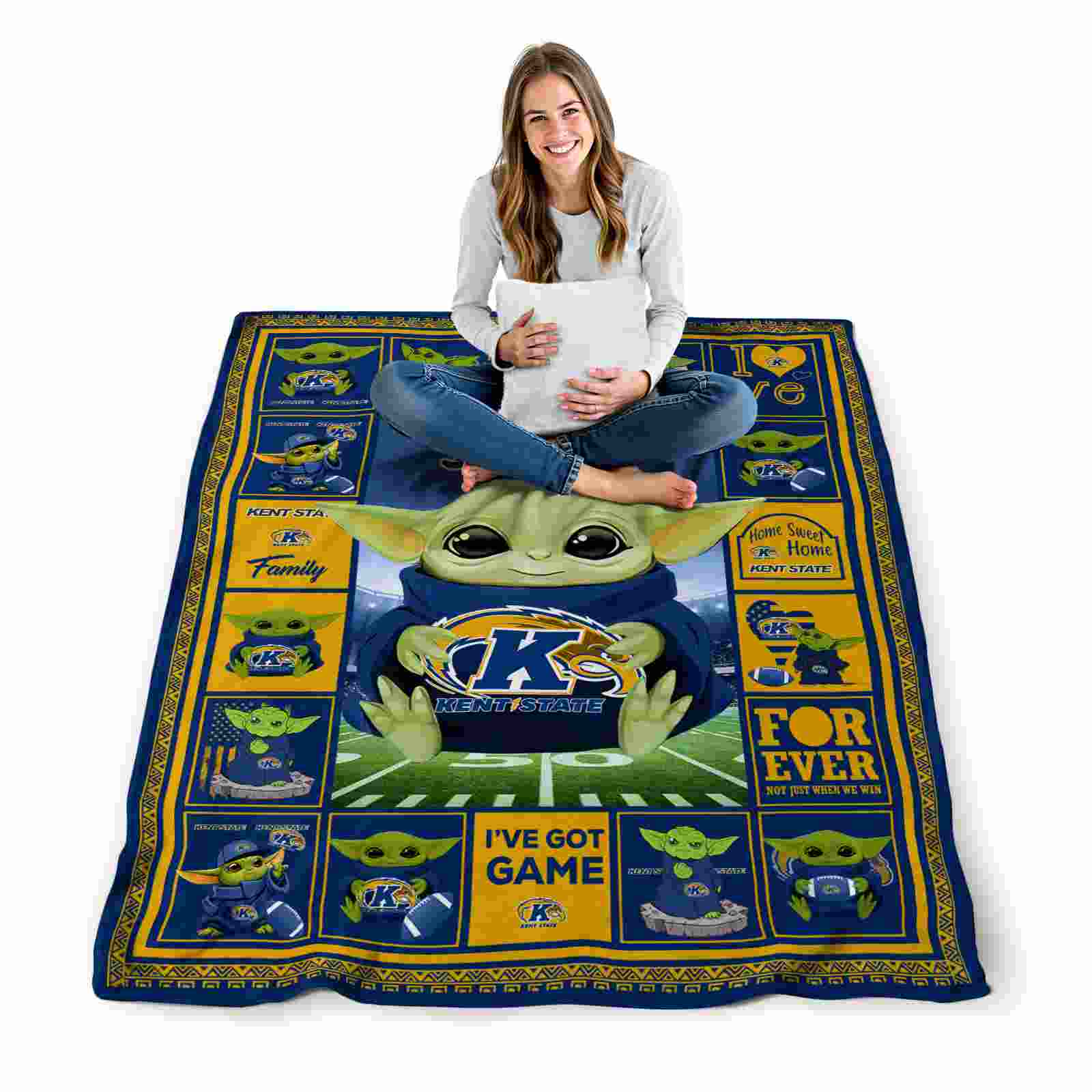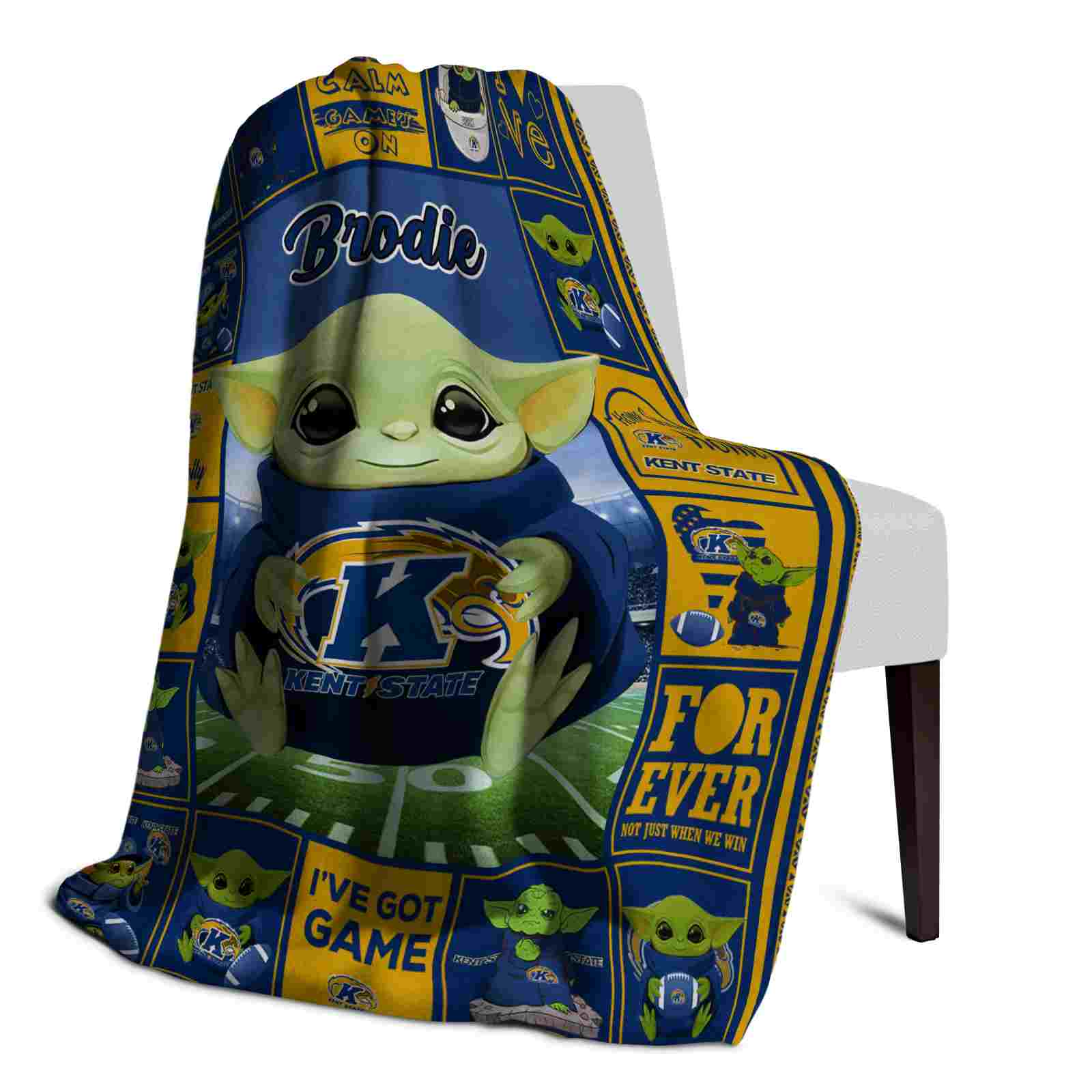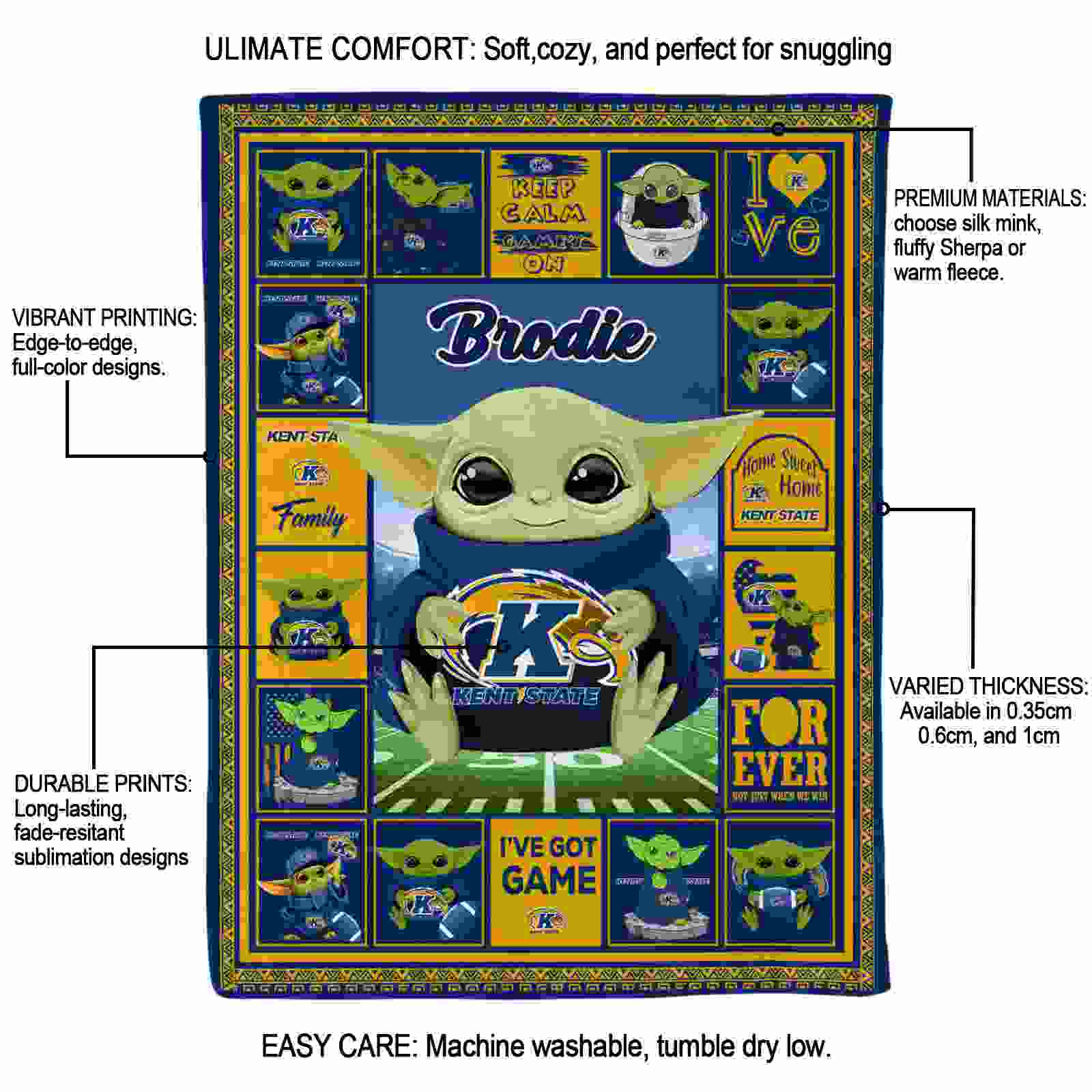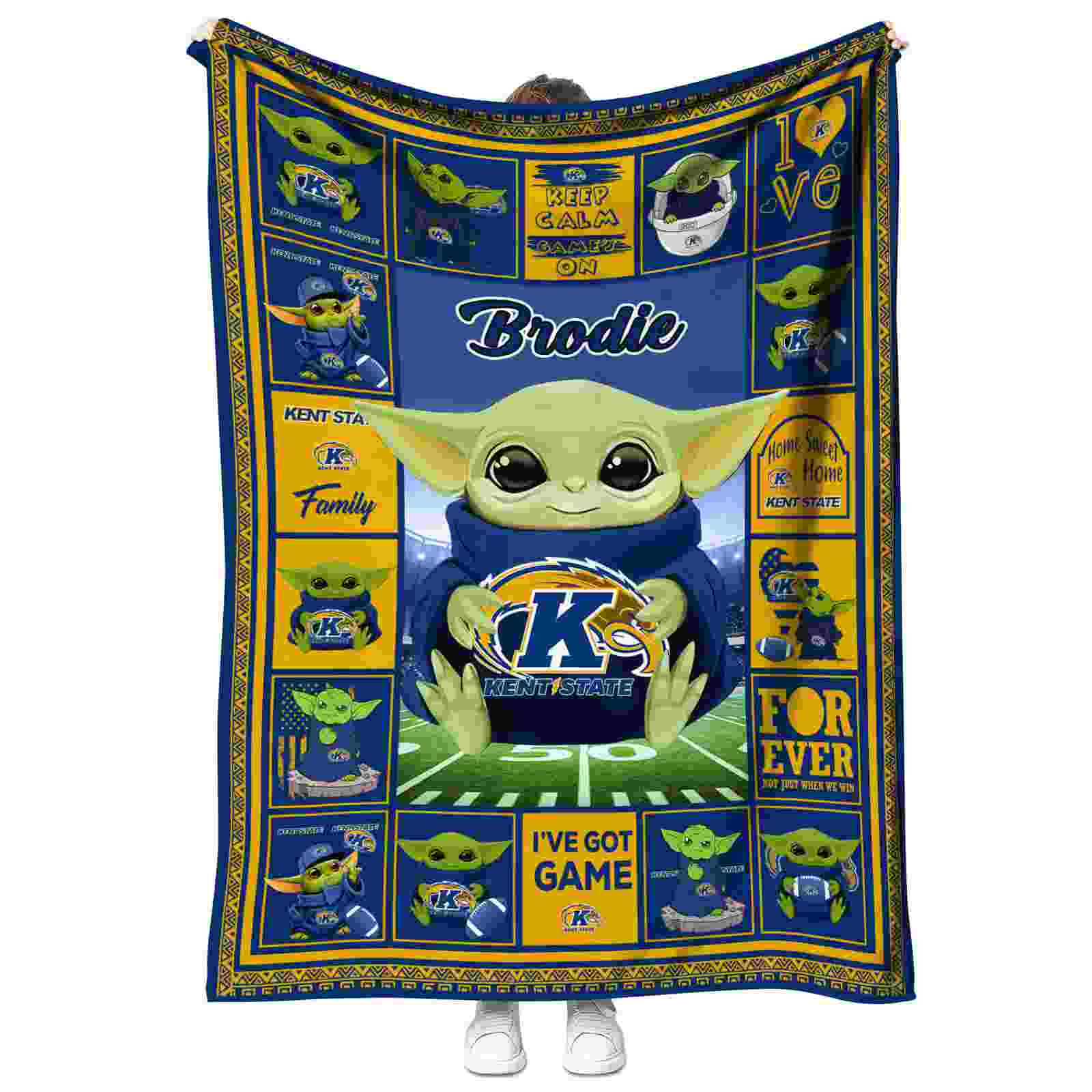 Personalized Kent State Golden Flashes Baby Yoda Navy Blue Blanket