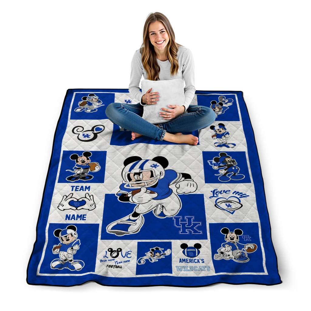 Personalized Kentucky Wildcats Mickey Crimson Blue White Quilt Blanket