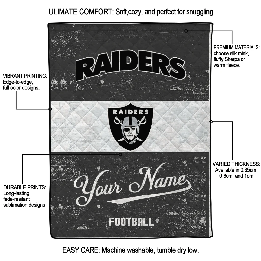 The Personalized Las Vegas Raiders Hibiscus Burst Black White Quilt Blanket is more than a blanket—it’s everyday comfort, thoughtfully made. Crafted from premium quilting fabric with a soft microfiber touch, it offers a smooth hand-feel and lasting coziness. Layered quilting with a cotton-filled core provides adaptable warmth across seasons while maintaining a clean, tailored look on your bed or sofa.
