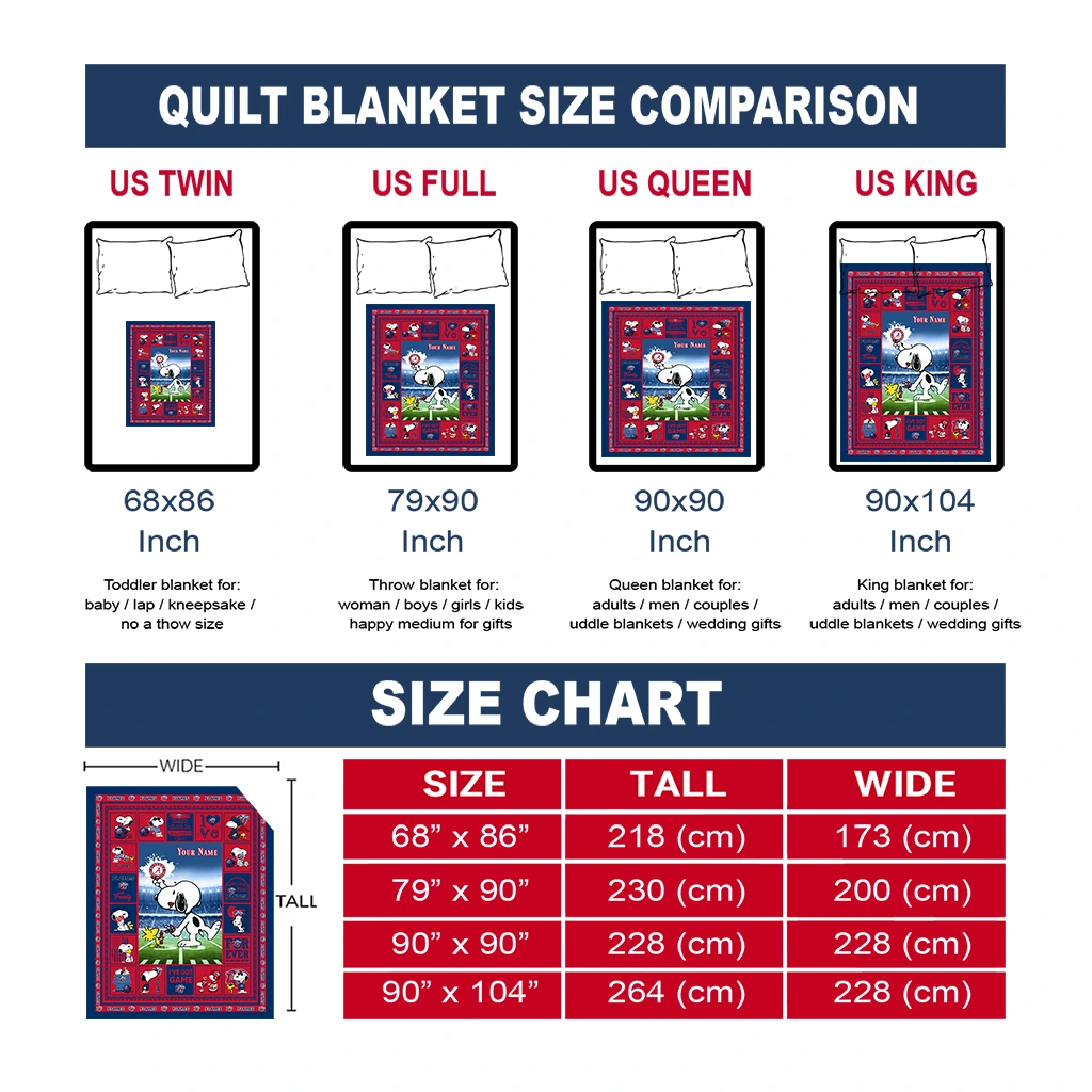 The Personalized Liberty Flames Snoopy Coach Red Quilt Blanket is more than a blanket—it’s everyday comfort, thoughtfully made. Crafted from premium quilting fabric with a soft microfiber touch, it offers a smooth hand-feel and lasting coziness. Layered quilting with a cotton-filled core provides adaptable warmth across seasons while maintaining a clean, tailored look on your bed or sofa.