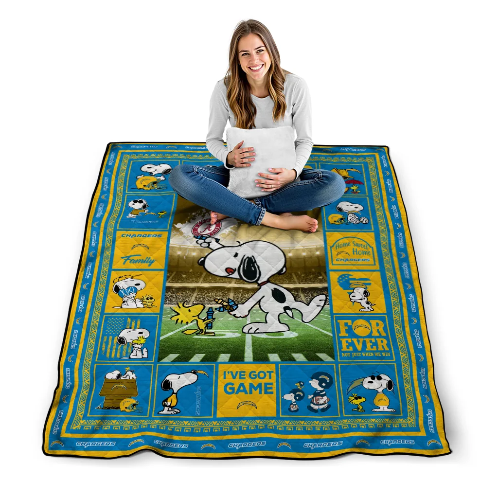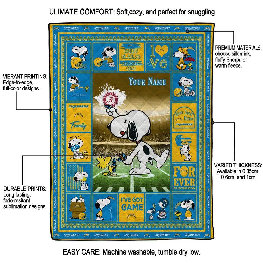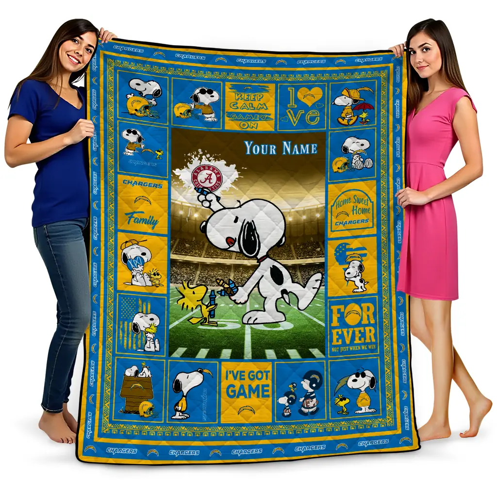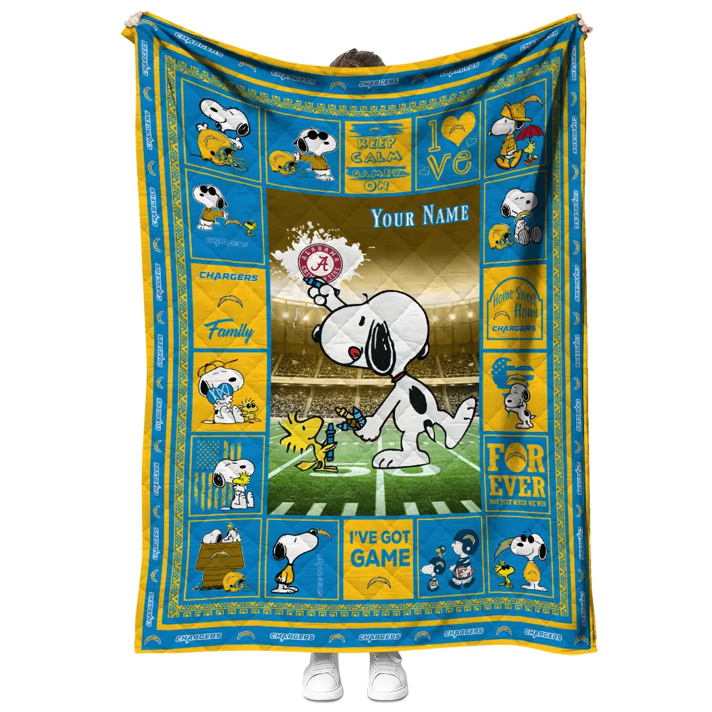 Personalized Los Angeles Chargers Snoopy Coach Blue Quilt Blanket