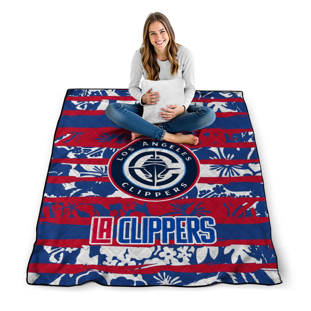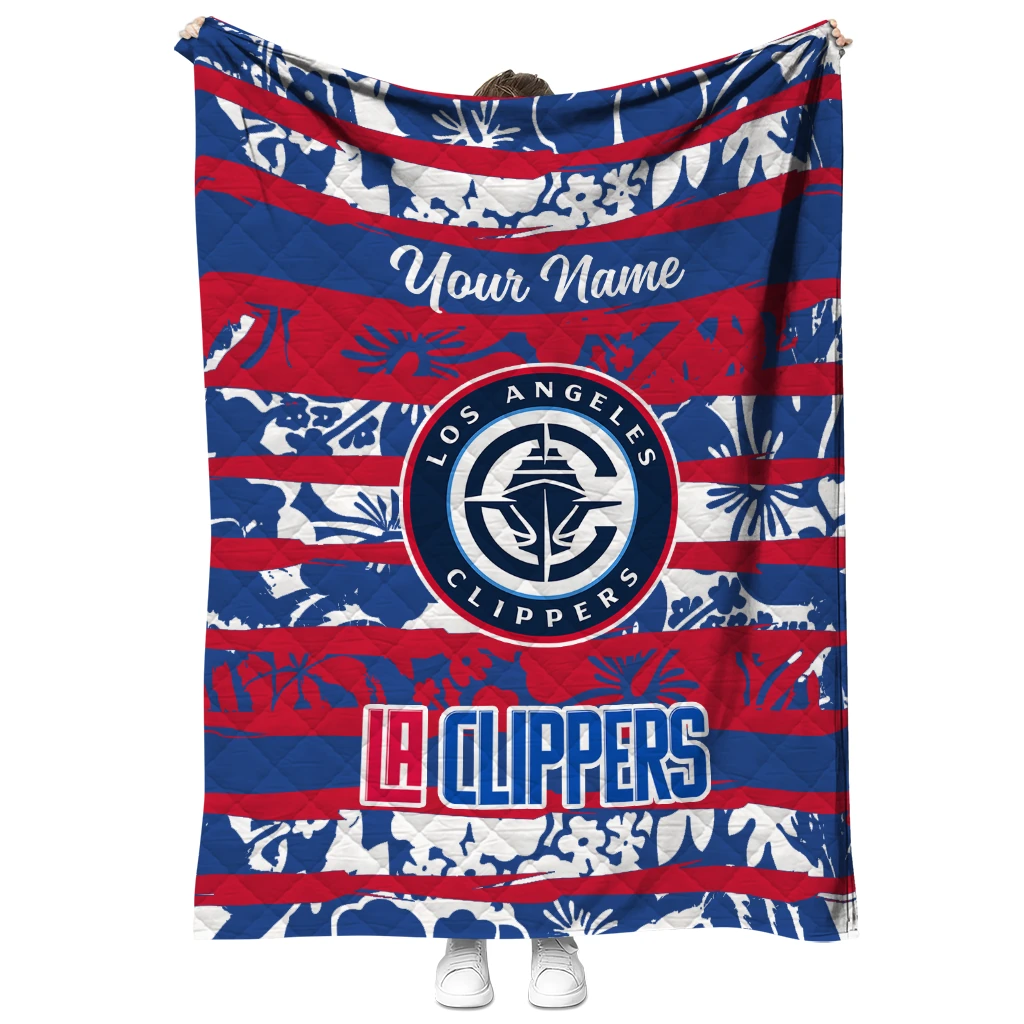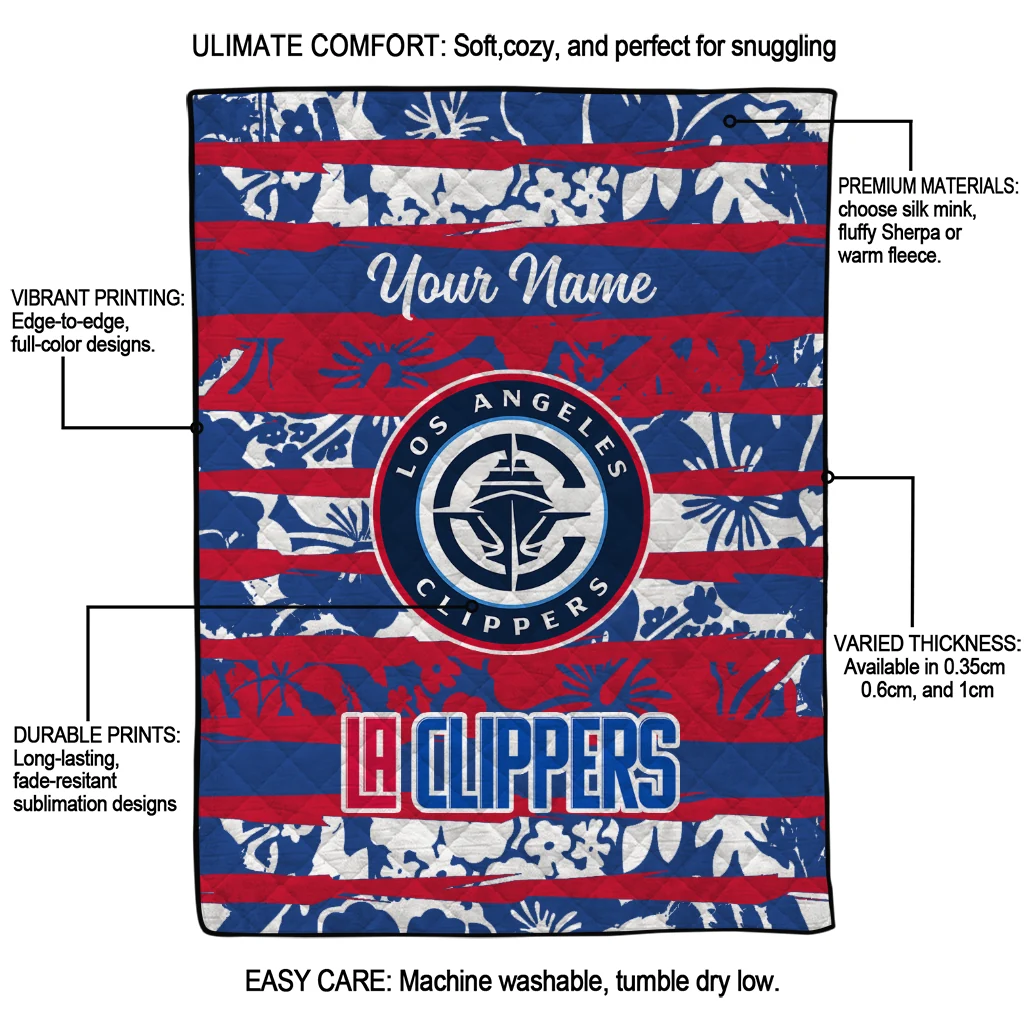 Personalized Los Angeles Clippers Layered Florals Red White Quilt Blanket