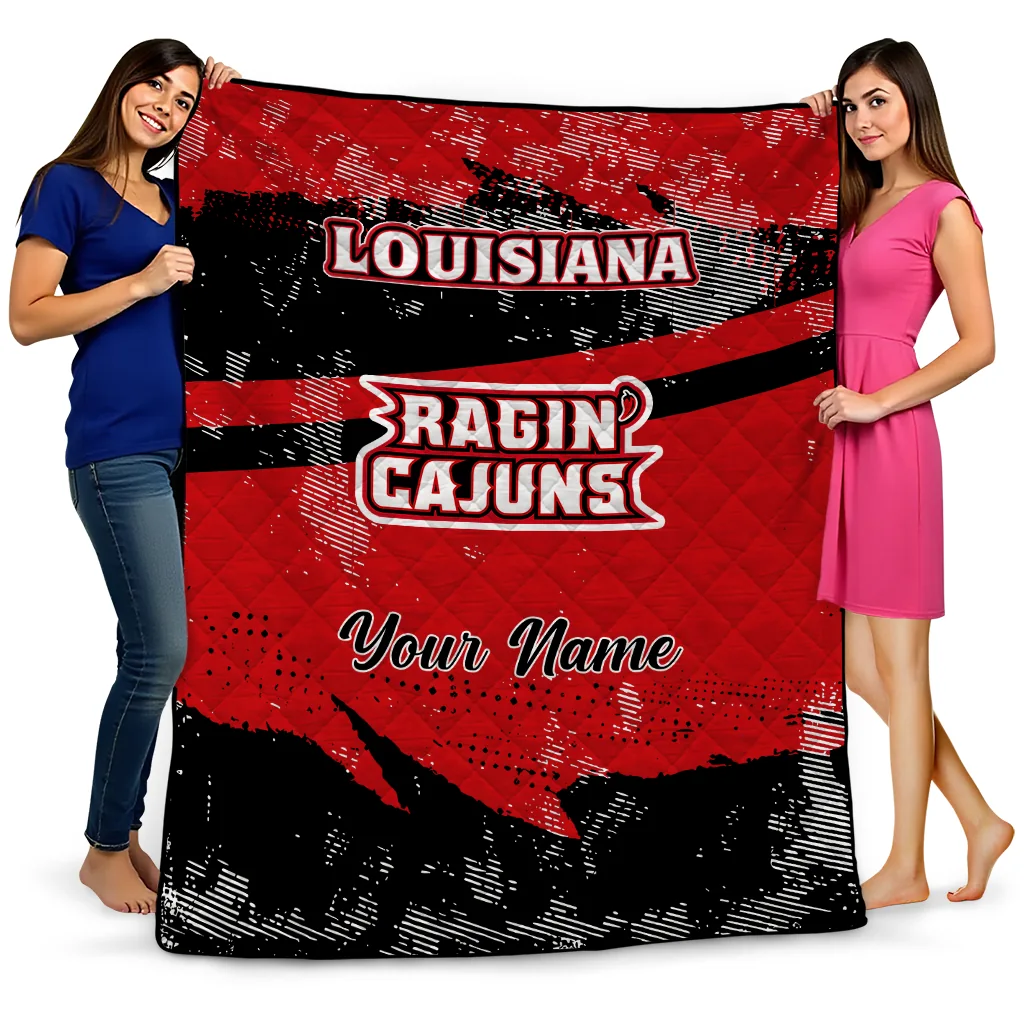 Personalized Louisiana Ragin’ Cajuns Brushstroke Layers Red Quilt Blanket