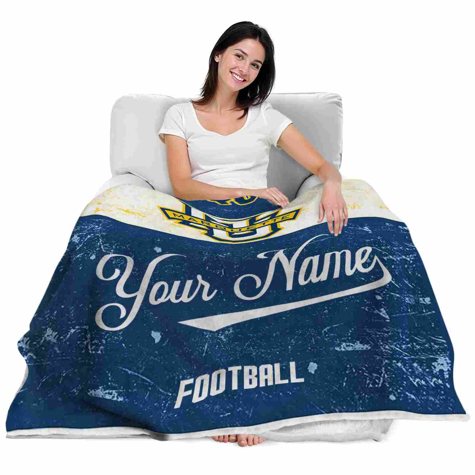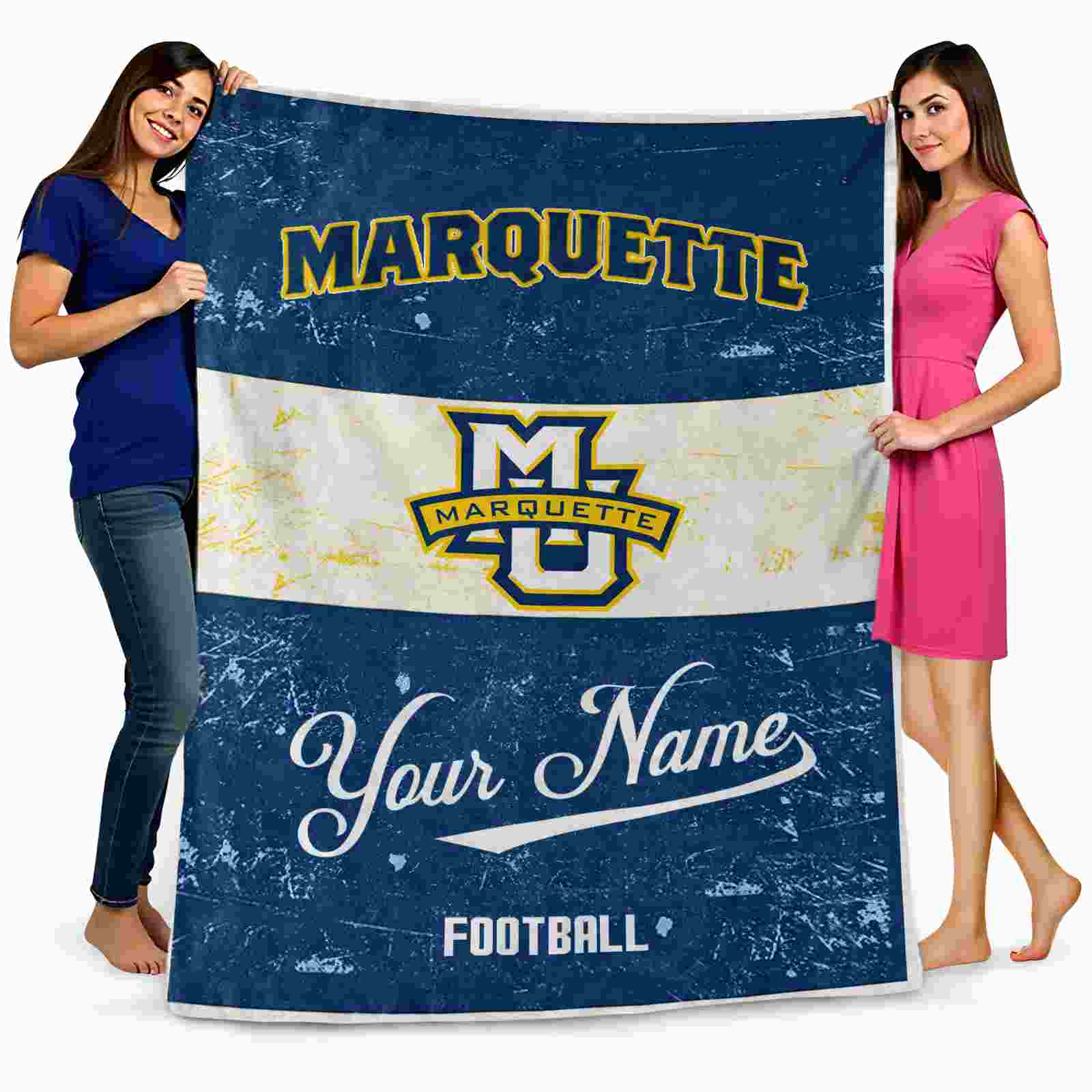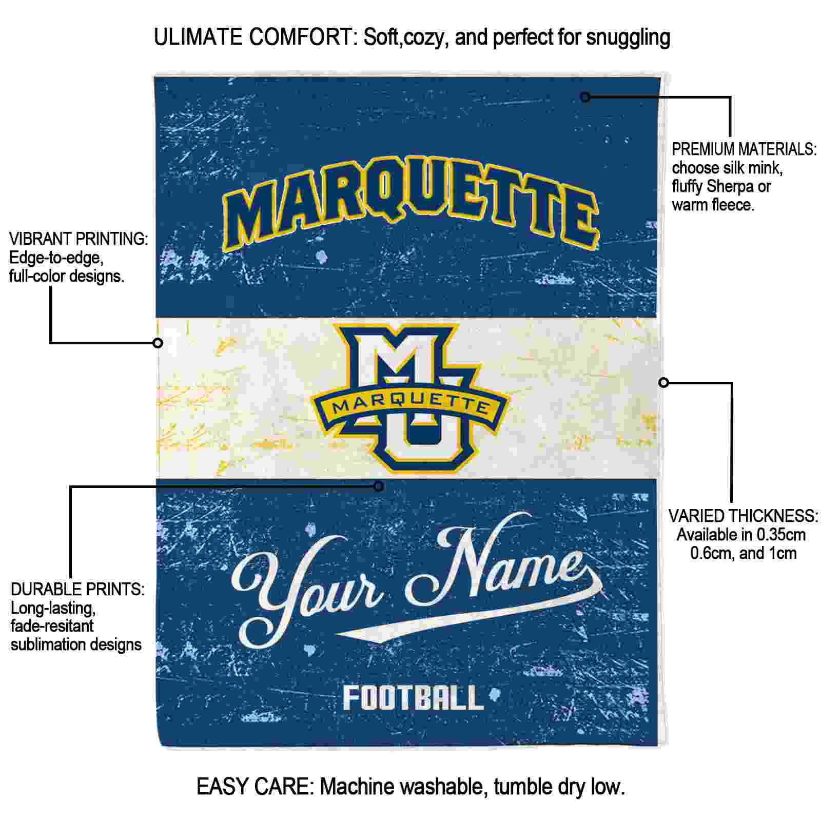 Personalized Marquette Golden Eagles Grunge Texture Blue White Blanket