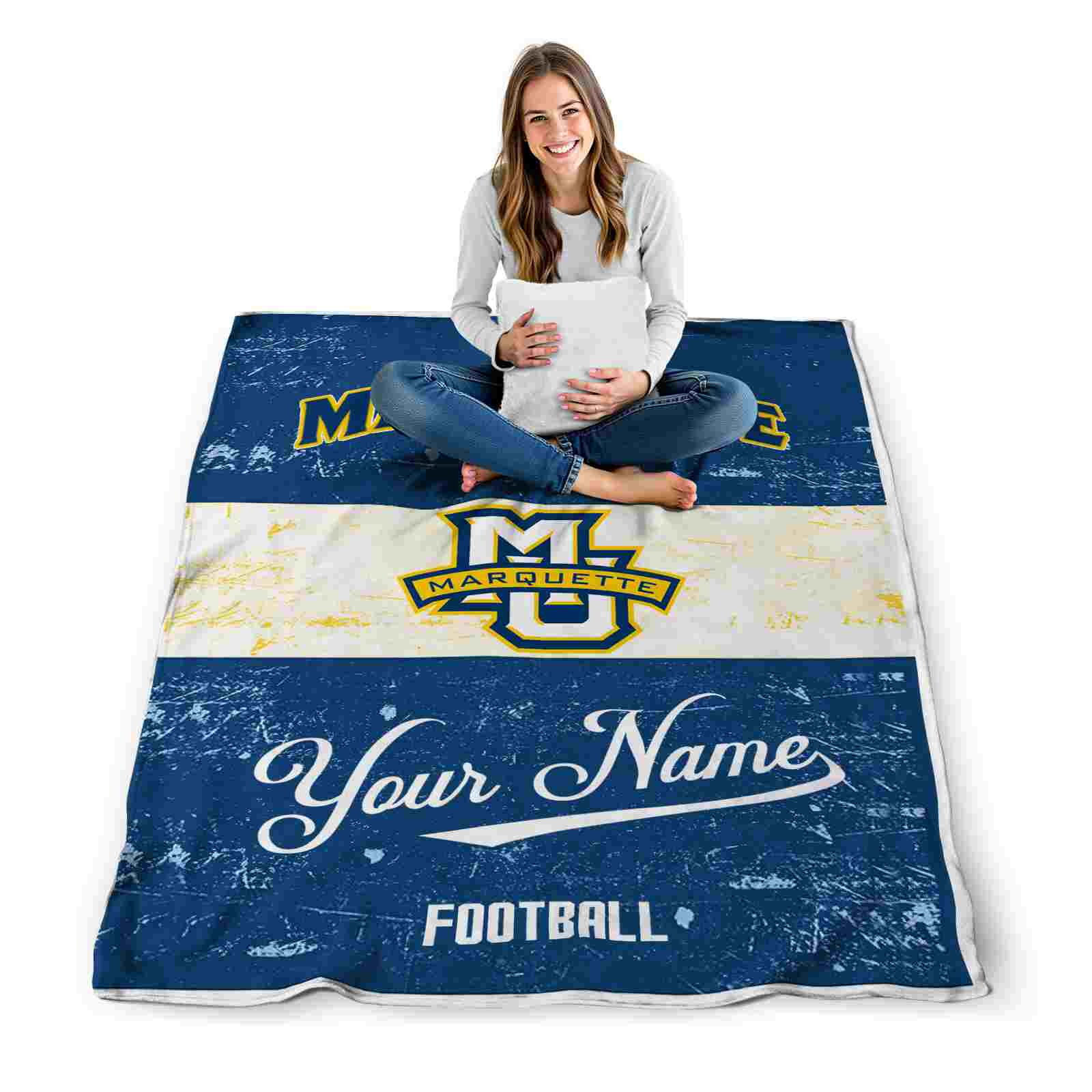 Without a doubt, the Personalized Marquette Golden Eagles Grunge Texture Blue White Blanket from Marquette Golden Eagles Blankets collection is offering true fans a chance to showcase passion in a cool way. Personalize it with your favorite team’s logo or a meaningful name to make it uniquely yours. Isn’t that great? The full-color print ensures vibrant, edge-to-edge designs, bringing your sports enthusiasm to life!