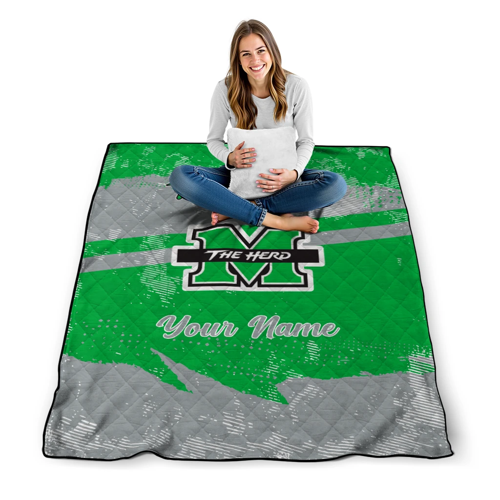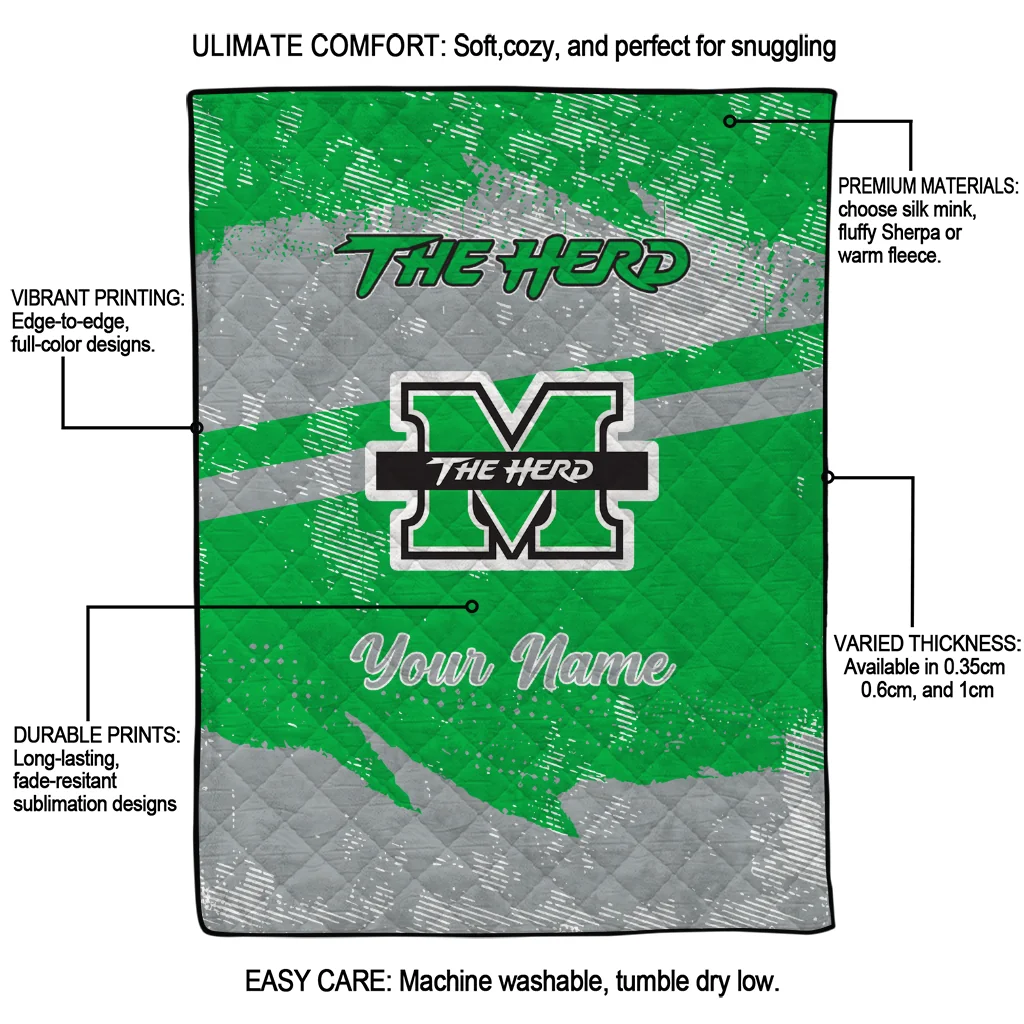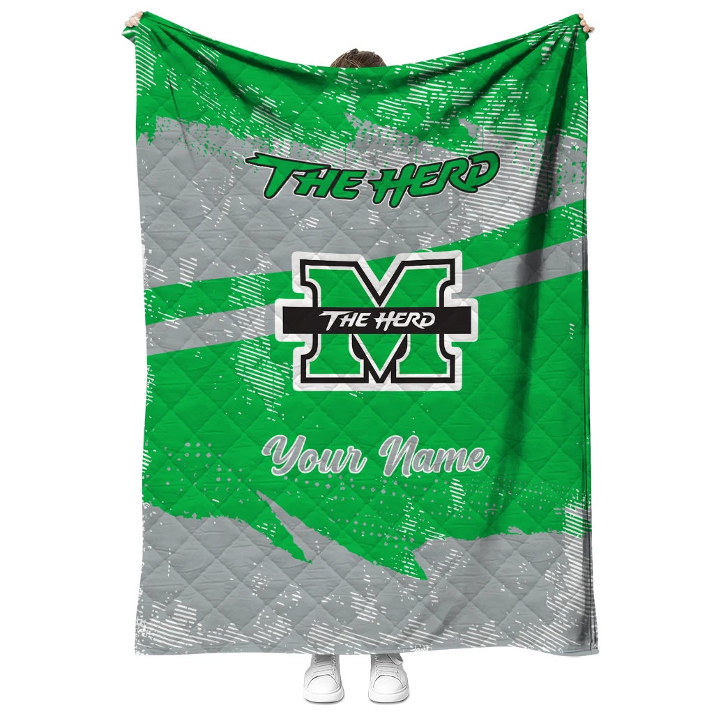 Personalized Marshall Thundering Herd Brushstroke Layers Green Quilt Blanket