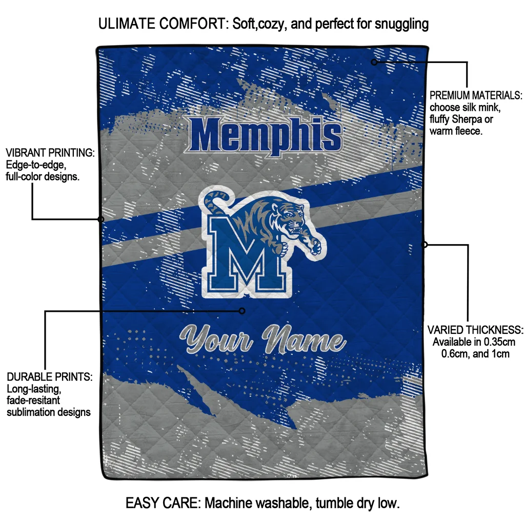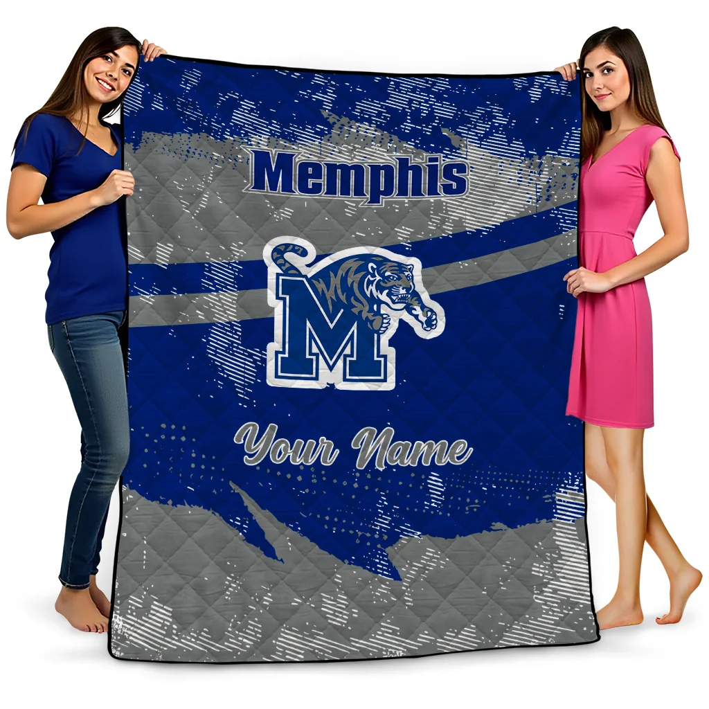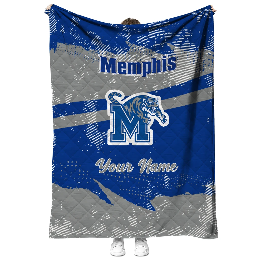 Wrap yourself in warmth and pride with the Personalized Memphis Tigers Brushstroke Layers Blue Quilt Blanket from the Memphis Tigers Blankets collection at Yes That Blanket. Made from 100% premium quilting-weight polyester blended with a touch of microfiber, this quilt offers a smooth, soft finish you’ll love. Choose between two quilting styles—Stipple or Diagonal—and enjoy the comfort of a cotton-filled layer inside that adds extra coziness for every season. The border is available in classic black or white, giving your design a clean, timeless edge.