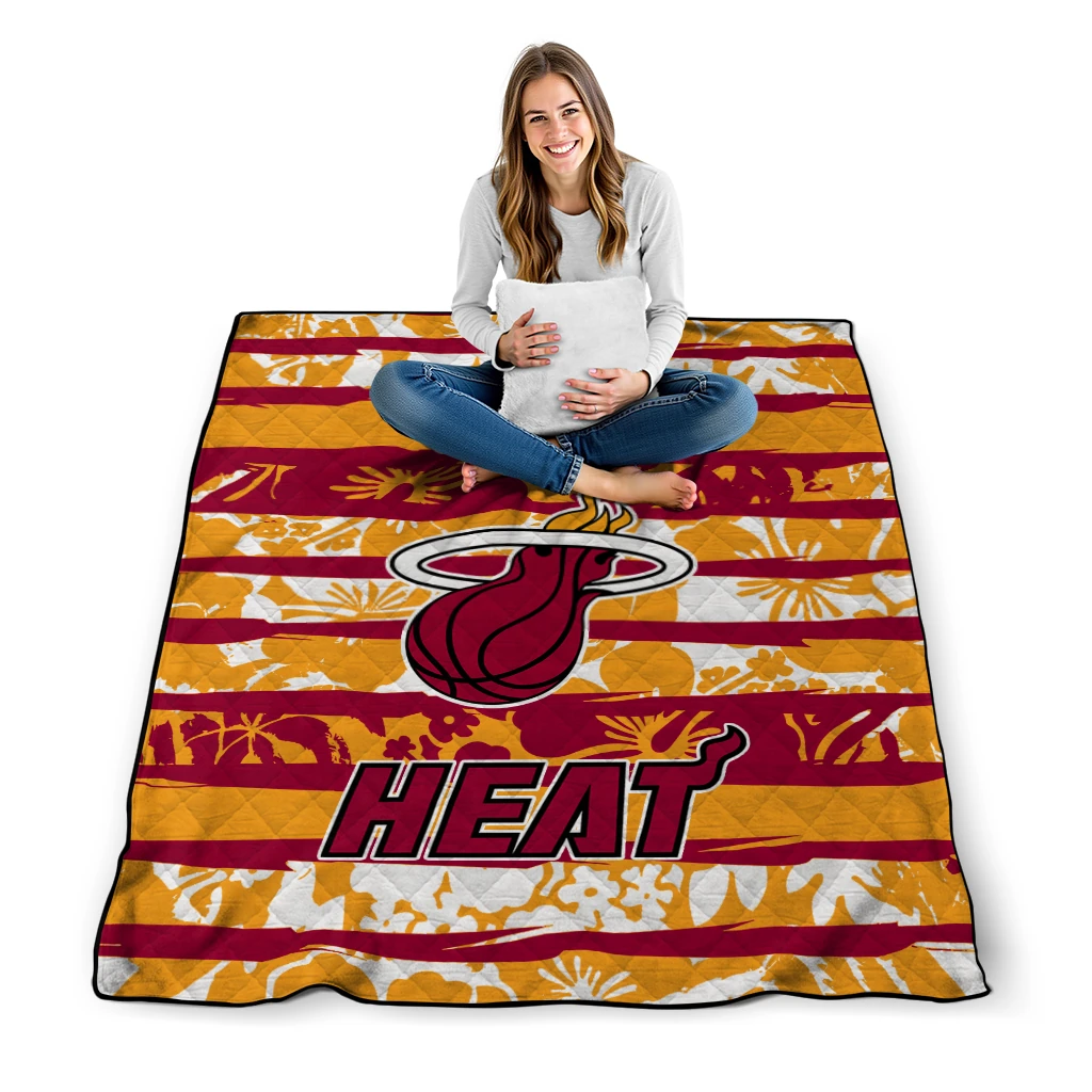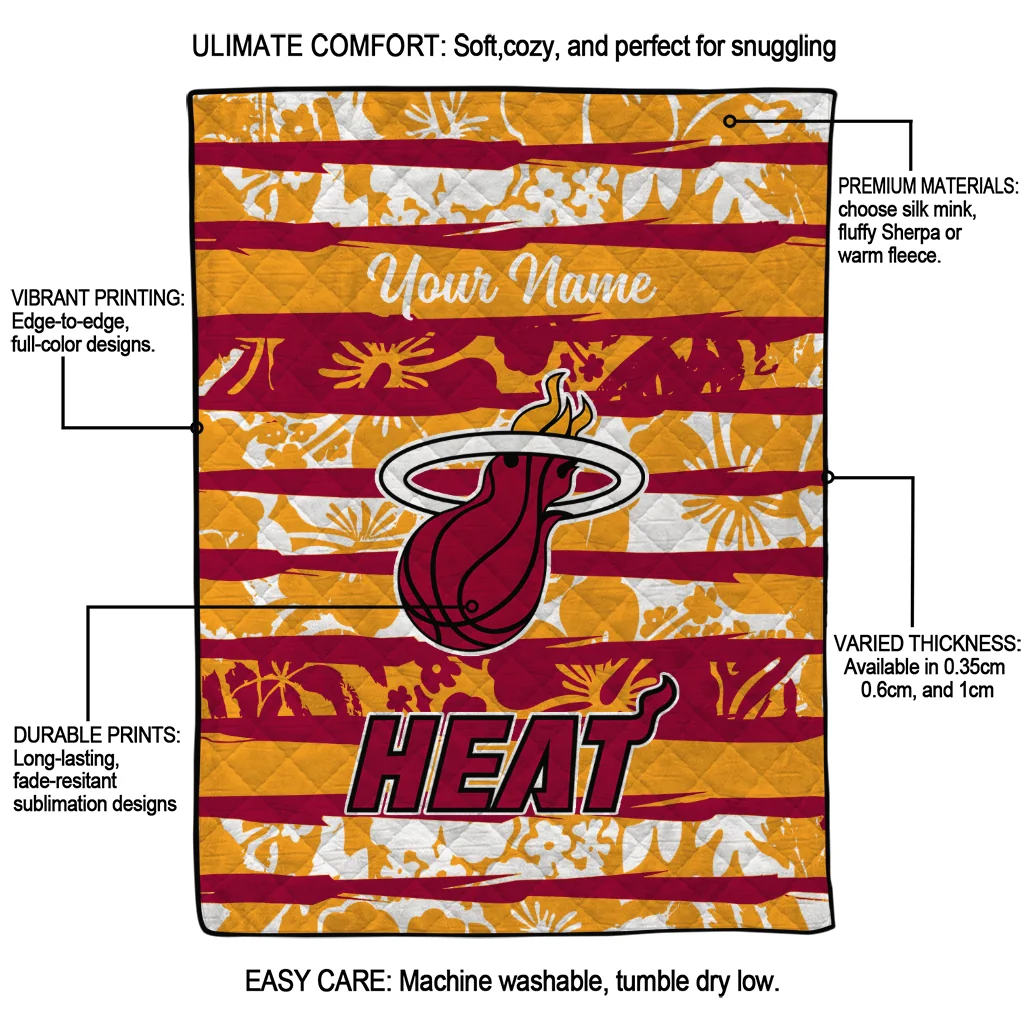 Wrap yourself in warmth and pride with the Personalized Miami Heat Layered Florals Red White Quilt Blanket from the Miami Heat Blankets collection at Yes That Blanket. Made from 100% premium quilting-weight polyester blended with a touch of microfiber, this quilt offers a smooth, soft finish you’ll love. Choose between two quilting styles—Stipple or Diagonal—and enjoy the comfort of a cotton-filled layer inside that adds extra coziness for every season. The border is available in classic black or white, giving your design a clean, timeless edge.
