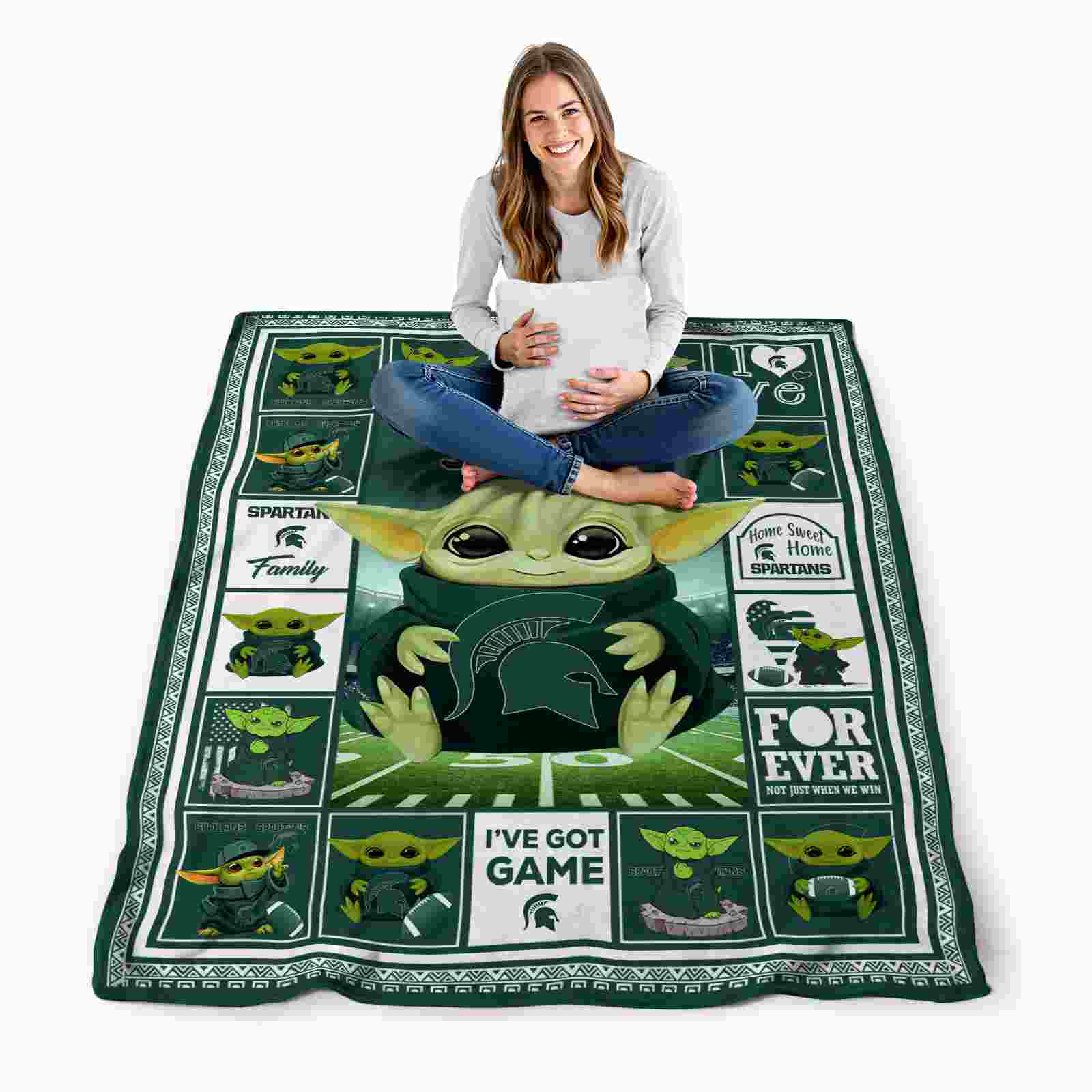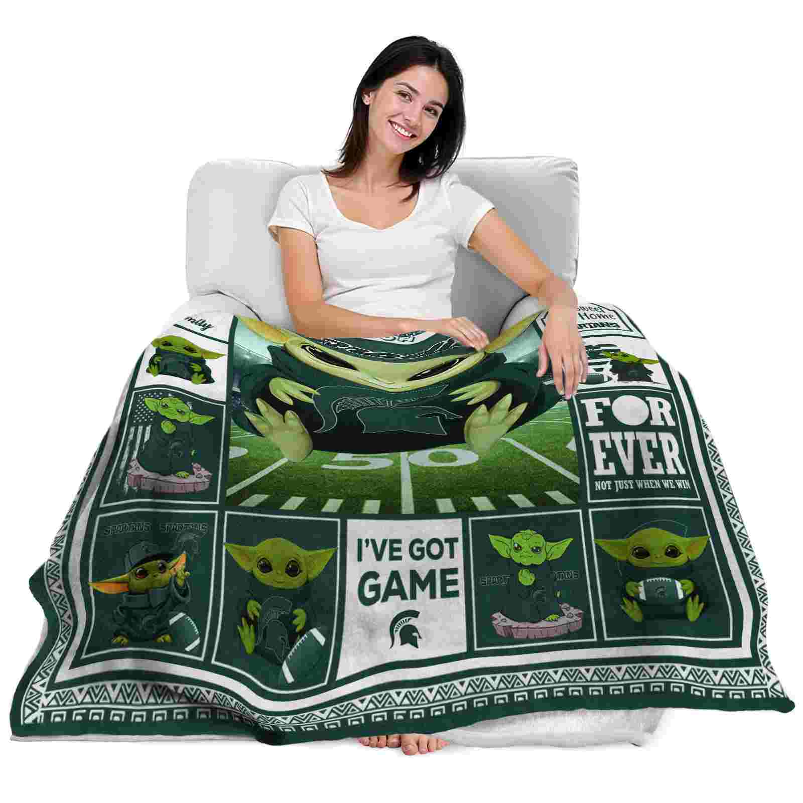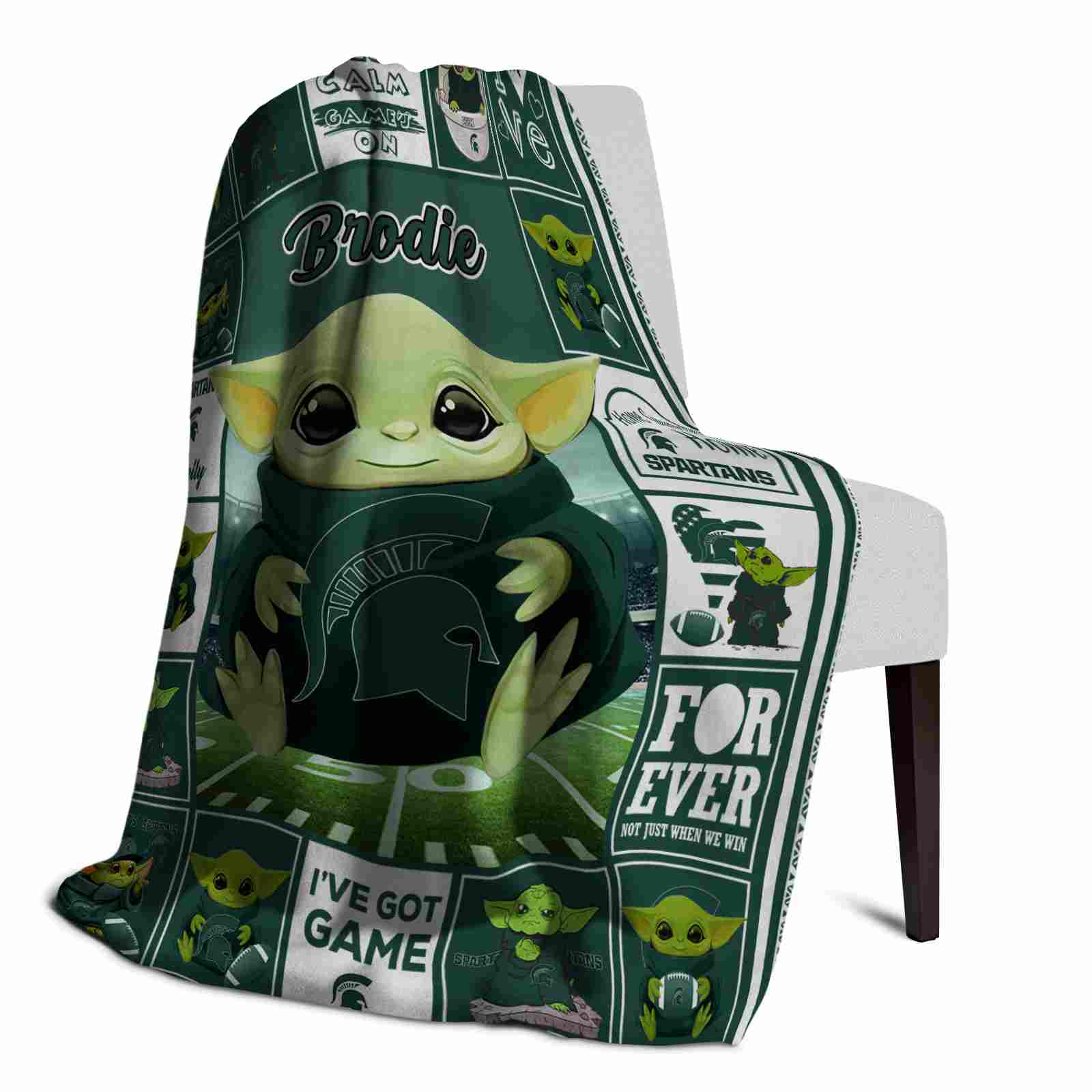 The Personalized Michigan State Spartans Baby Yoda Green Blanket isn’t just a blanket—it’s your connection to the game. Snuggle up while reliving legendary plays or dreaming of future championships. Its bold, team-inspired designs keep your love for the sport front and center, while its easy-care durability means it’s always ready for your next adventure. From cheering at home to showcasing your loyalty on the go, this item of NCAA Blankets collection is made for fans who live and breathe the game.