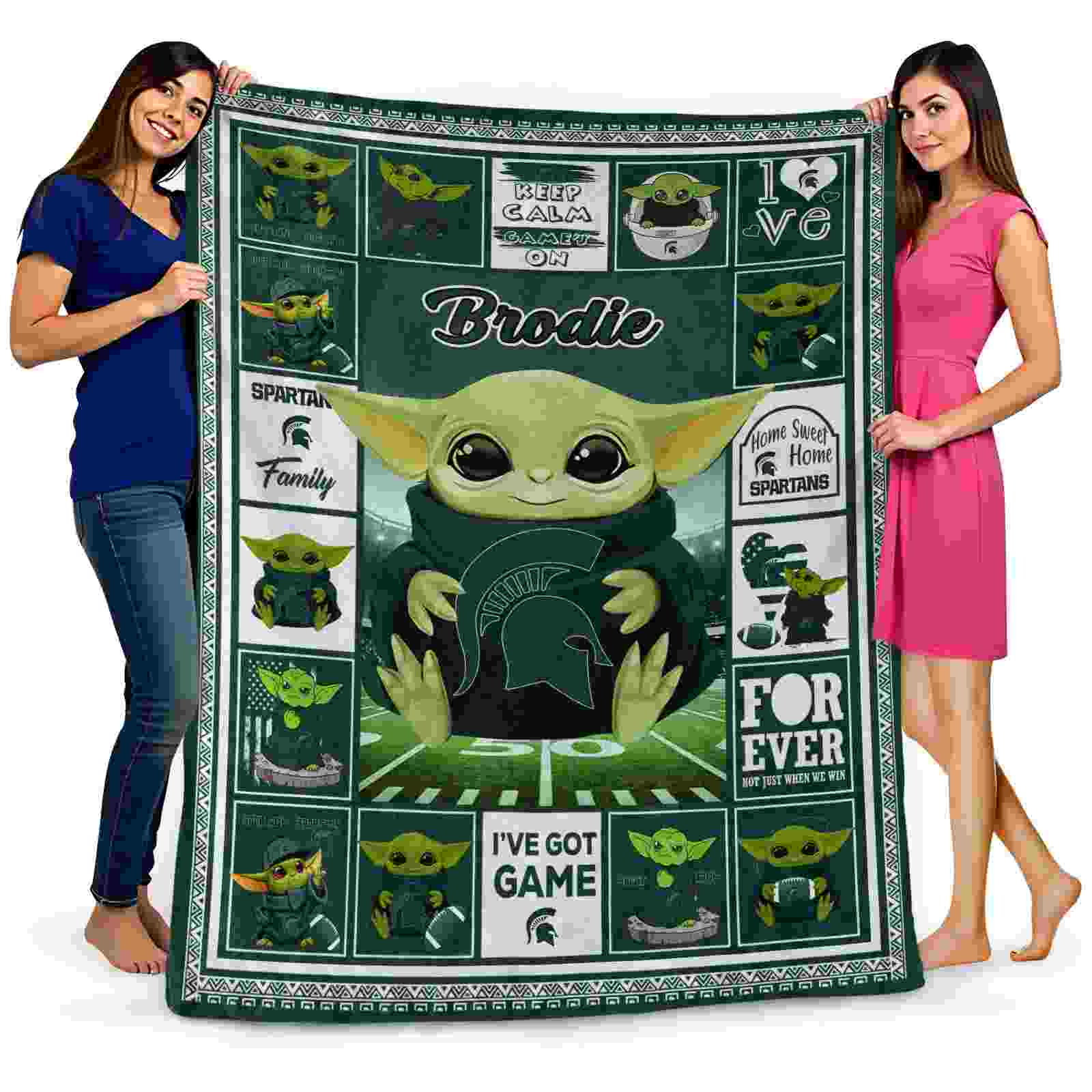 Without a doubt, the Personalized Michigan State Spartans Baby Yoda Green Blanket from Michigan State Spartans Blankets collection is offering true fans a chance to showcase passion in a cool way. Personalize it with your favorite team’s logo or a meaningful name to make it uniquely yours. Isn’t that great? The full-color print ensures vibrant, edge-to-edge designs, bringing your sports enthusiasm to life!