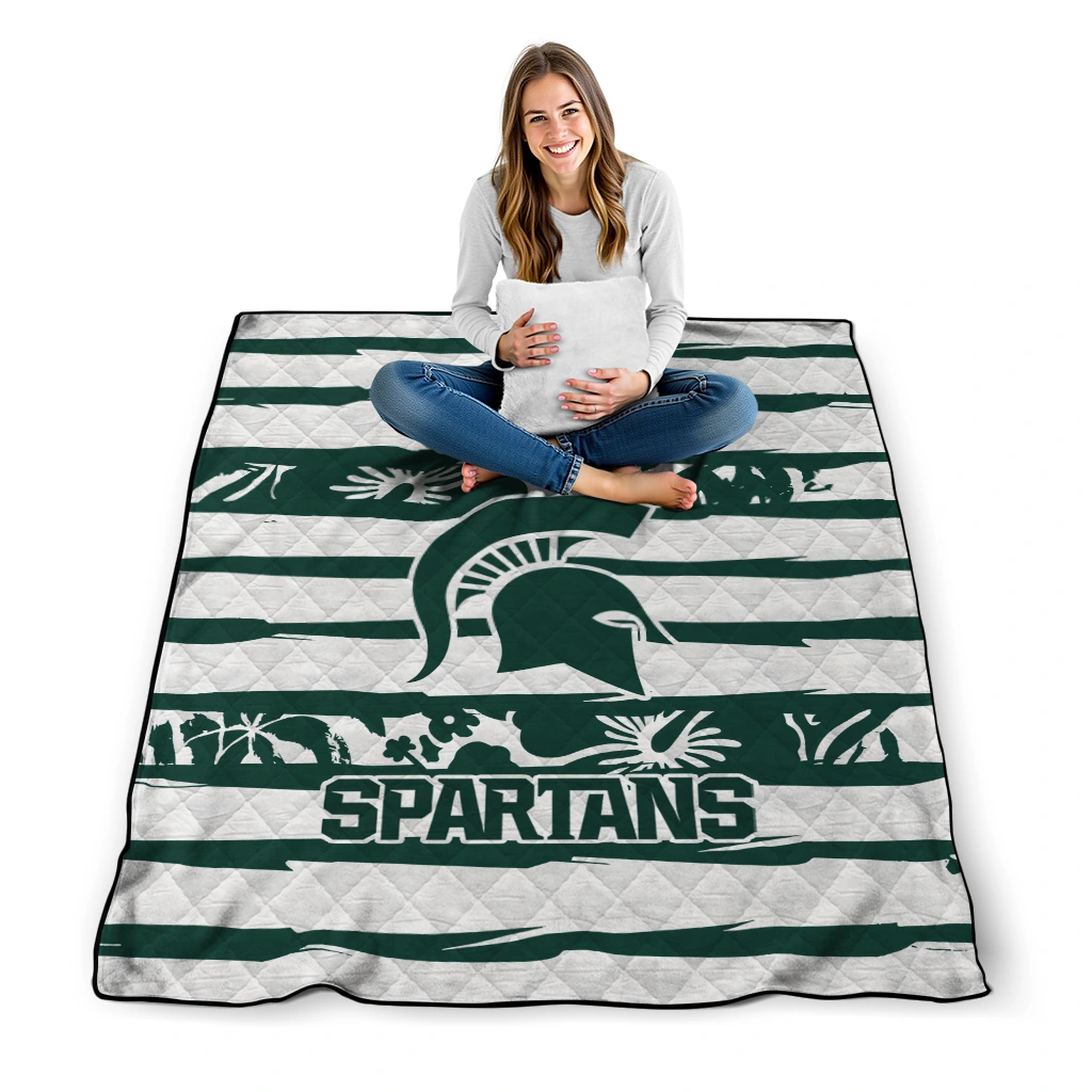 The Personalized Michigan State Spartans Layered Florals Green White Quilt Blanket is more than a blanket—it’s everyday comfort, thoughtfully made. Crafted from premium quilting fabric with a soft microfiber touch, it offers a smooth hand-feel and lasting coziness. Layered quilting with a cotton-filled core provides adaptable warmth across seasons while maintaining a clean, tailored look on your bed or sofa.