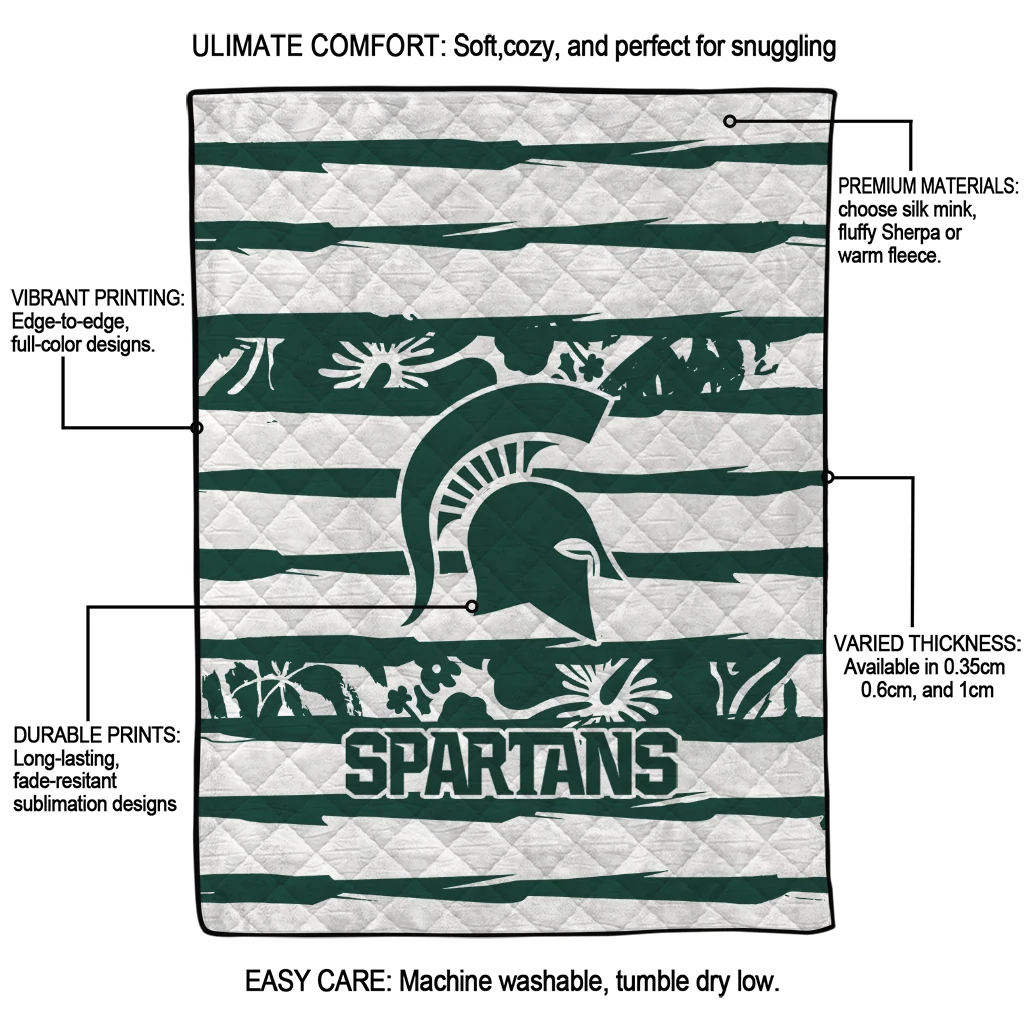 Personalized Michigan State Spartans Layered Florals Green White Quilt Blanket