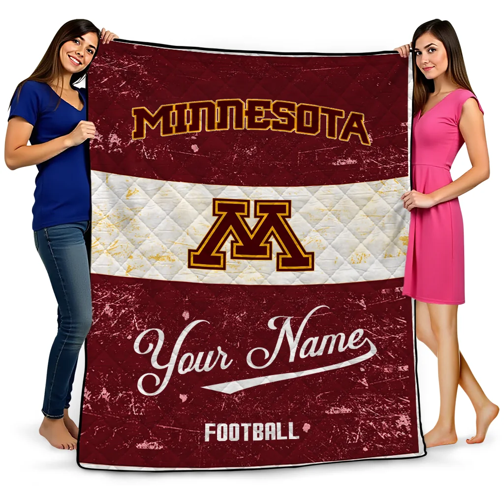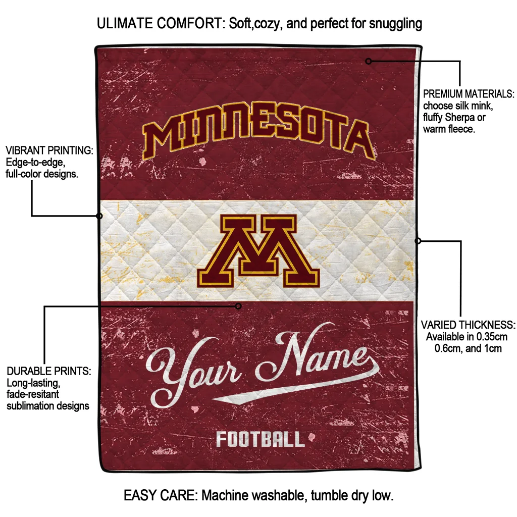Wrap yourself in warmth and pride with the Personalized Minnesota Golden Gophers Hibiscus Burst Maroon White Quilt Blanket from the Minnesota Golden Gophers Blankets collection at Yes That Blanket. Made from 100% premium quilting-weight polyester blended with a touch of microfiber, this quilt offers a smooth, soft finish you’ll love. Choose between two quilting styles—Stipple or Diagonal—and enjoy the comfort of a cotton-filled layer inside that adds extra coziness for every season. The border is available in classic black or white, giving your design a clean, timeless edge.