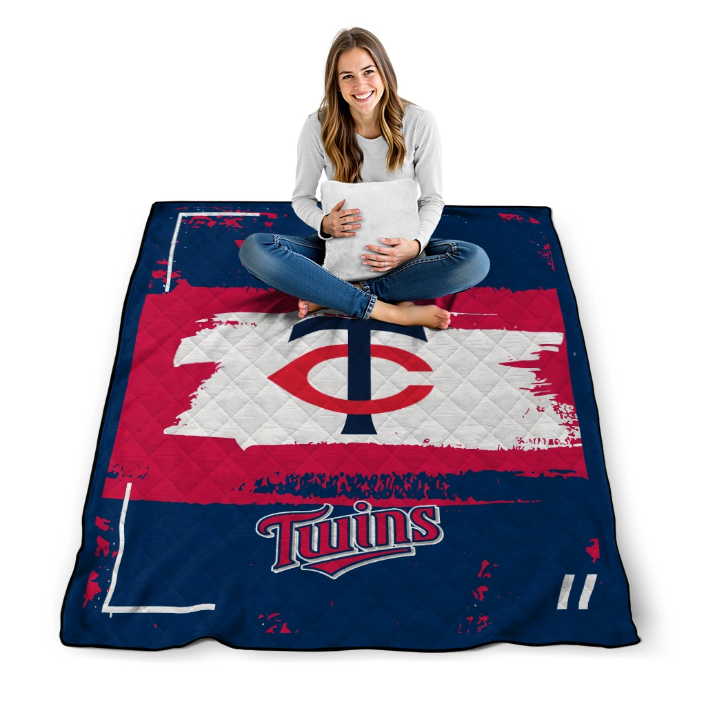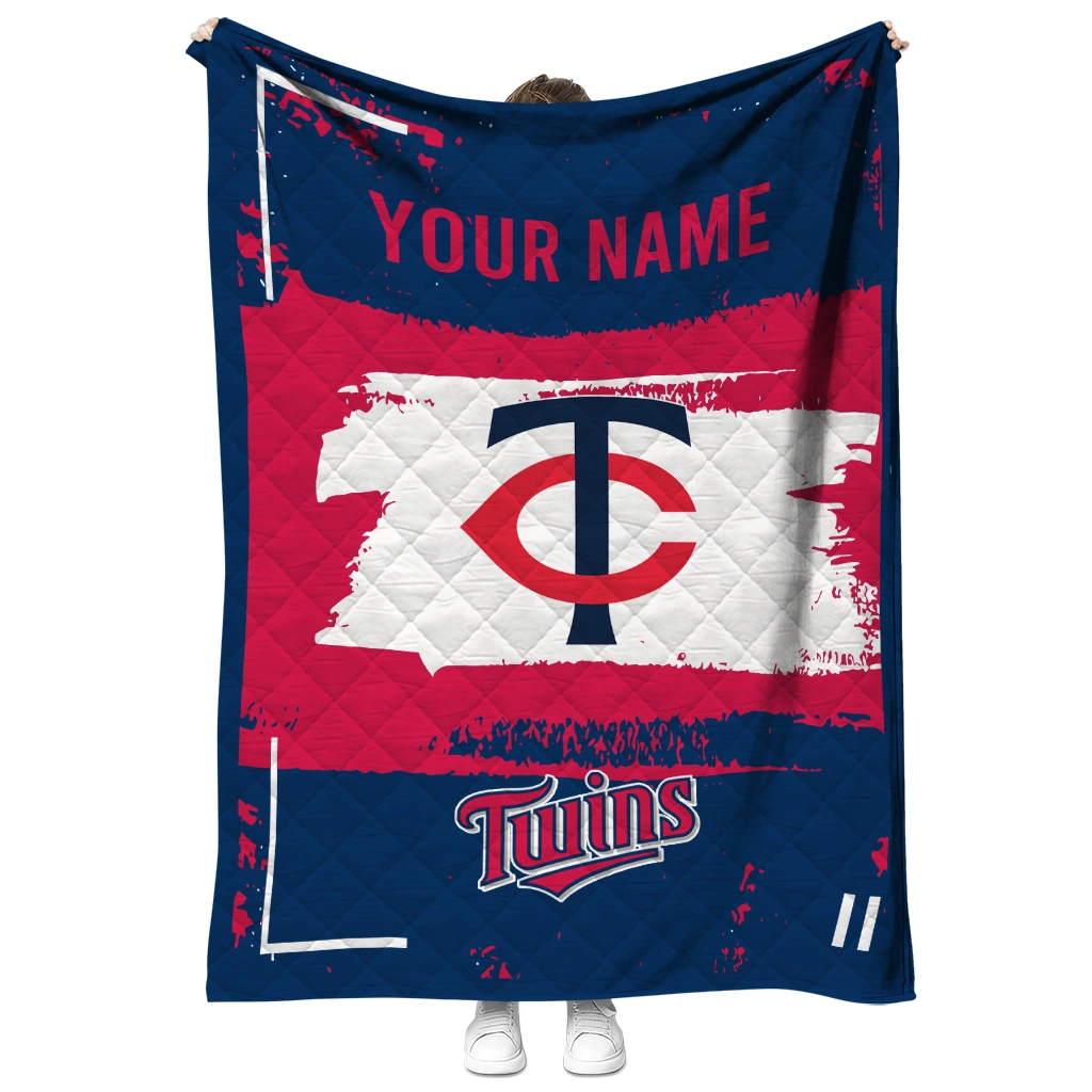 Personalized Minnesota Twins Grunge Patch Navy White Quilt Blanket