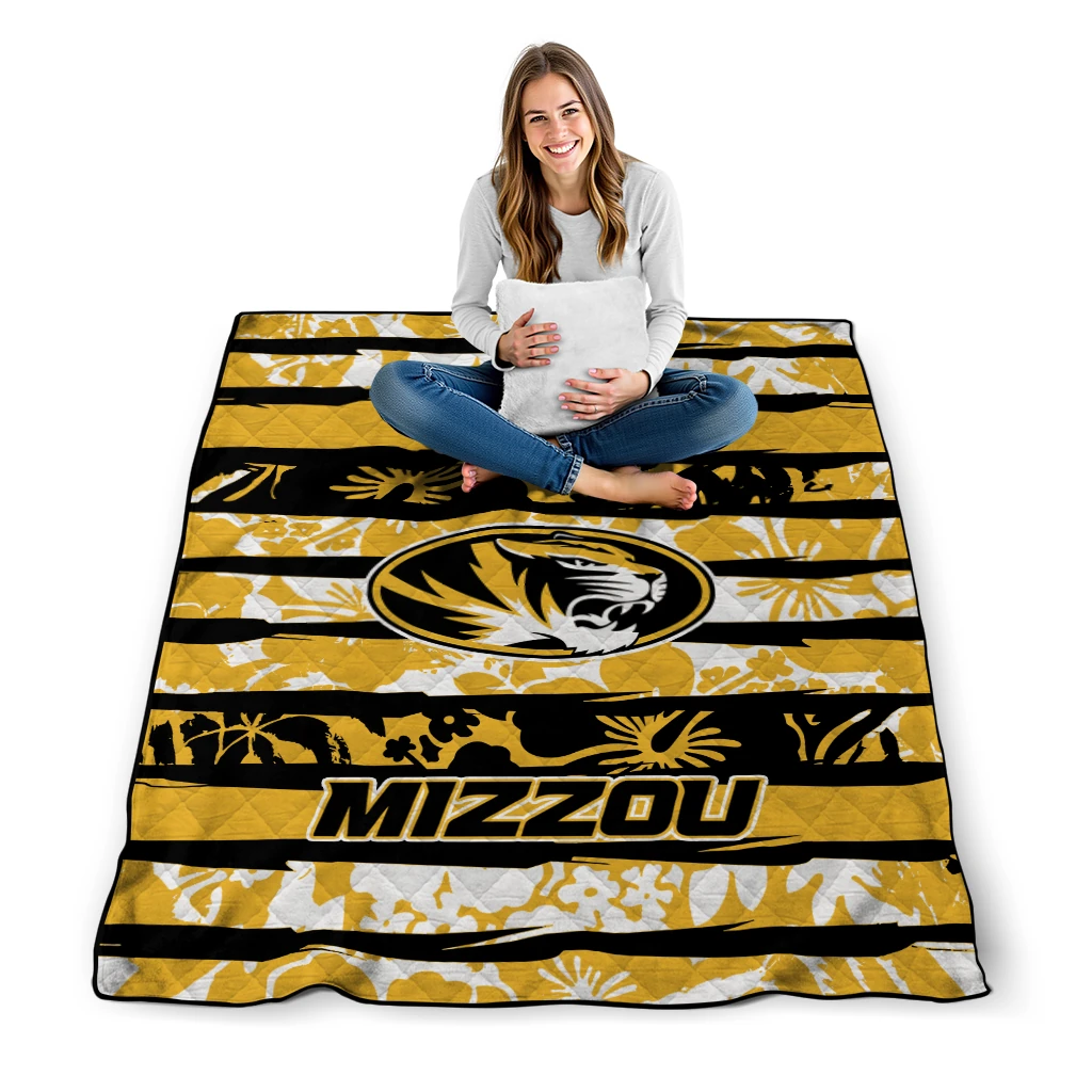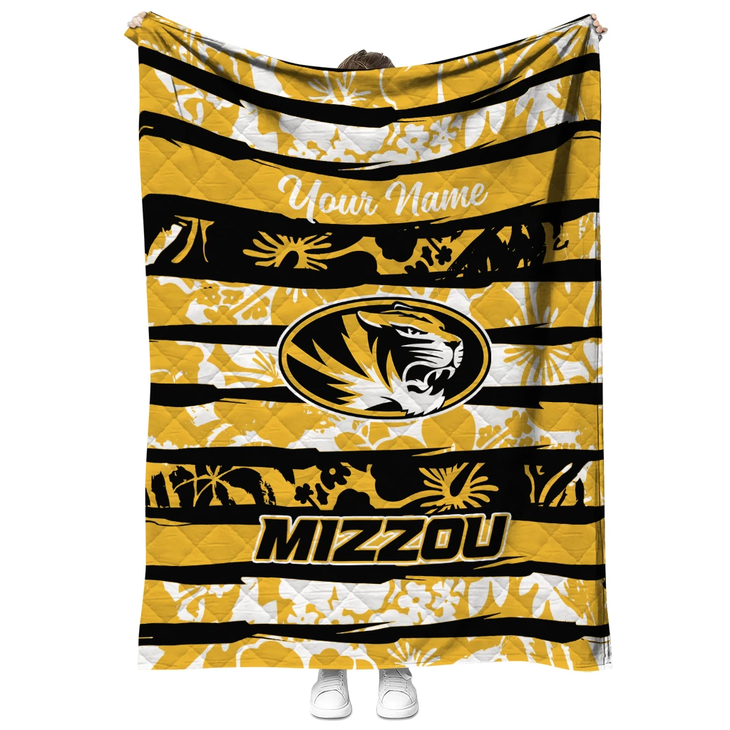 Personalized Missouri Tigers Layered Florals Black White Quilt Blanket