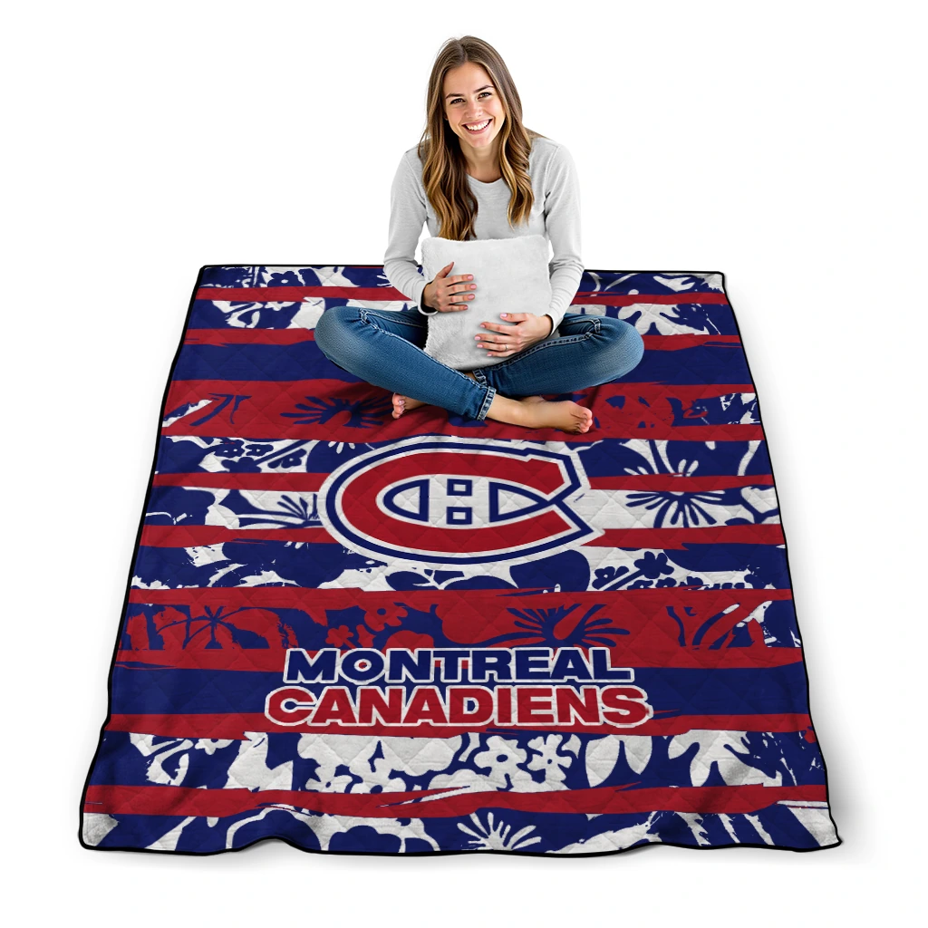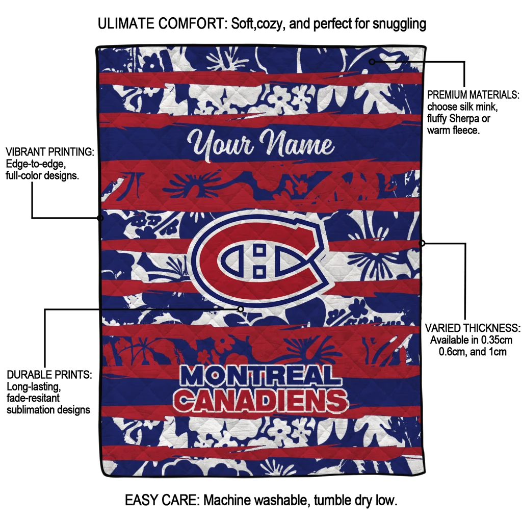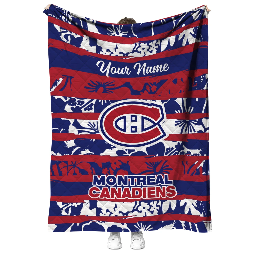Wrap yourself in warmth and pride with the Personalized Montreal Canadiens Layered Florals Red White Quilt Blanket from the Montreal Canadiens Blankets collection at Yes That Blanket. Made from 100% premium quilting-weight polyester blended with a touch of microfiber, this quilt offers a smooth, soft finish you’ll love. Choose between two quilting styles—Stipple or Diagonal—and enjoy the comfort of a cotton-filled layer inside that adds extra coziness for every season. The border is available in classic black or white, giving your design a clean, timeless edge.