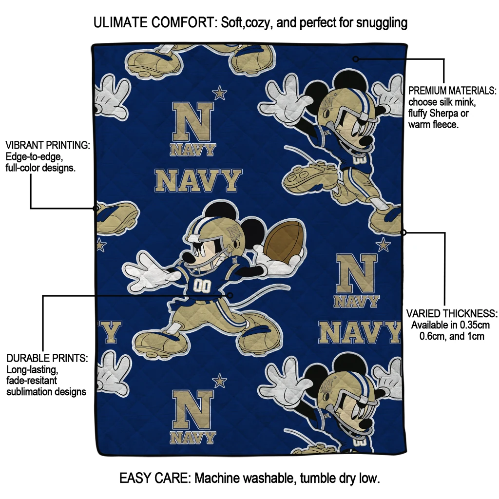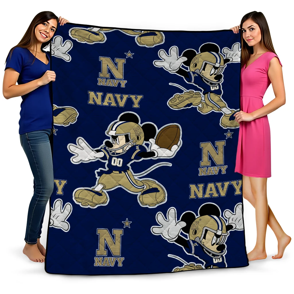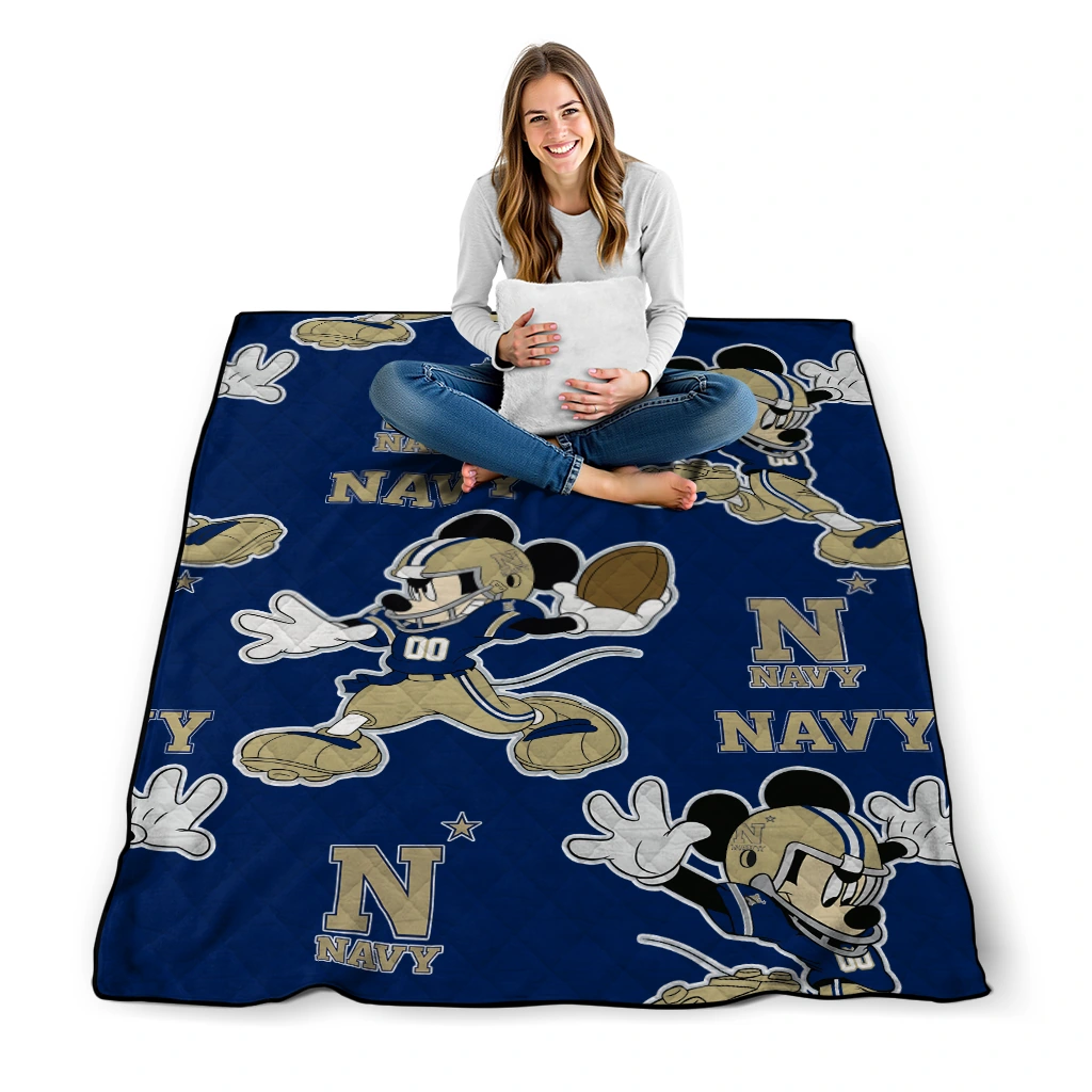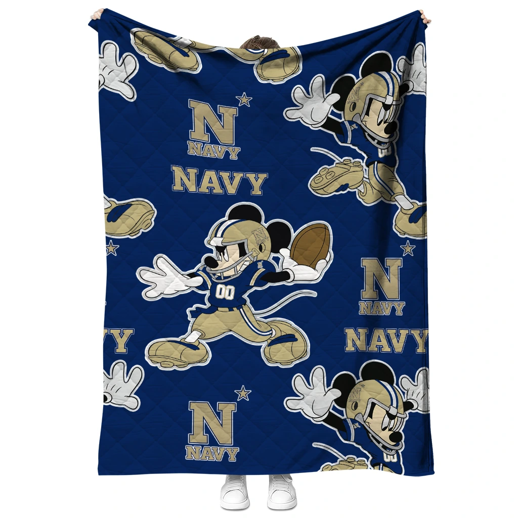 Personalized Navy Midshipmen Mickey Football Blue Quilt Blanket