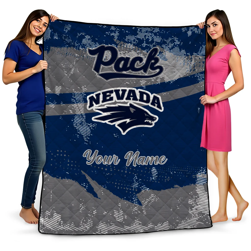 Personalized Nevada Wolf Pack Brushstroke Layers Blue Quilt Blanket