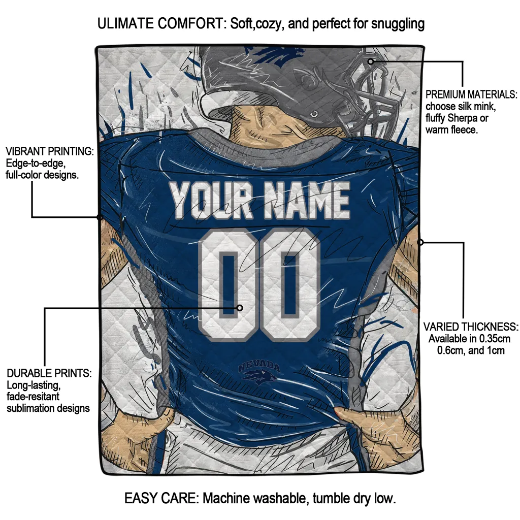 The Personalized Nevada Wolf Pack Player Sketch Blue Gray Quilt Blanket is more than a blanket—it’s everyday comfort, thoughtfully made. Crafted from premium quilting fabric with a soft microfiber touch, it offers a smooth hand-feel and lasting coziness. Layered quilting with a cotton-filled core provides adaptable warmth across seasons while maintaining a clean, tailored look on your bed or sofa.