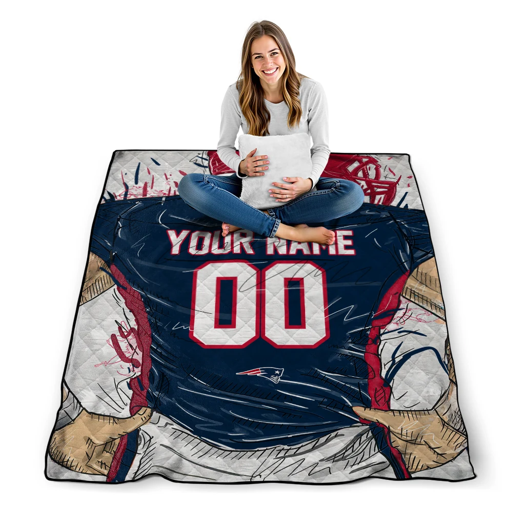The Personalized New England Patriots Player Sketch Blue Gray Quilt Blanket is more than a blanket—it’s everyday comfort, thoughtfully made. Crafted from premium quilting fabric with a soft microfiber touch, it offers a smooth hand-feel and lasting coziness. Layered quilting with a cotton-filled core provides adaptable warmth across seasons while maintaining a clean, tailored look on your bed or sofa.