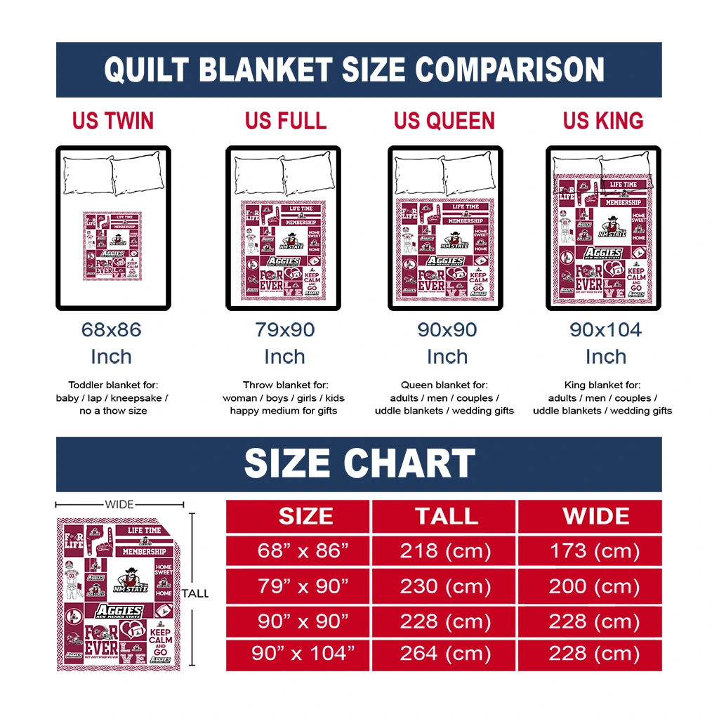 The Personalized New Mexico State Aggies Helmet Passion Crimson Quilt Blanket is more than a blanket—it’s everyday comfort, thoughtfully made. Crafted from premium quilting fabric with a soft microfiber touch, it offers a smooth hand-feel and lasting coziness. Layered quilting with a cotton-filled core provides adaptable warmth across seasons while maintaining a clean, tailored look on your bed or sofa.