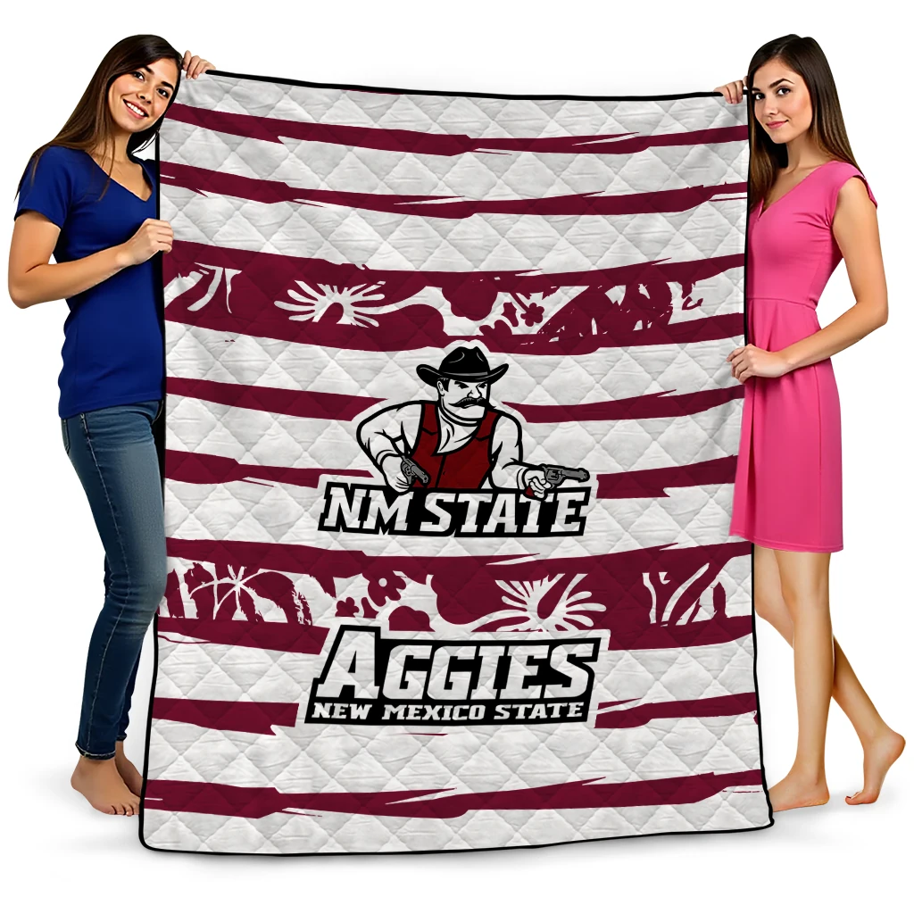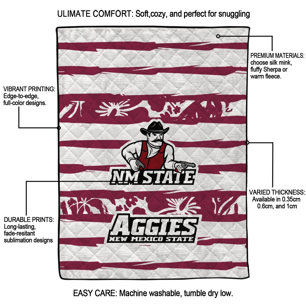 Personalized New Mexico State Aggies Layered Florals Crimson White Quilt Blanket