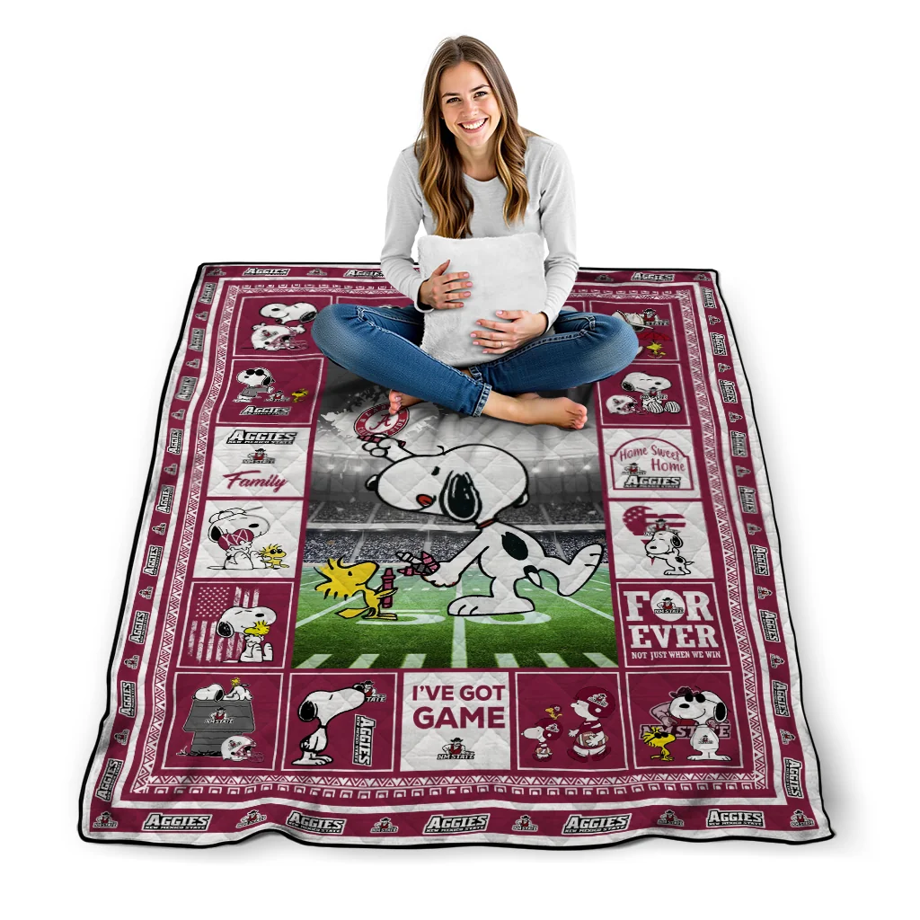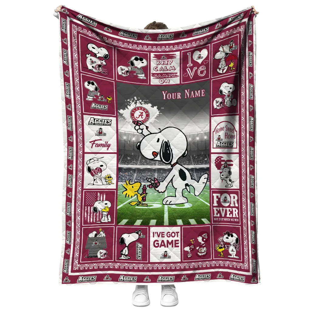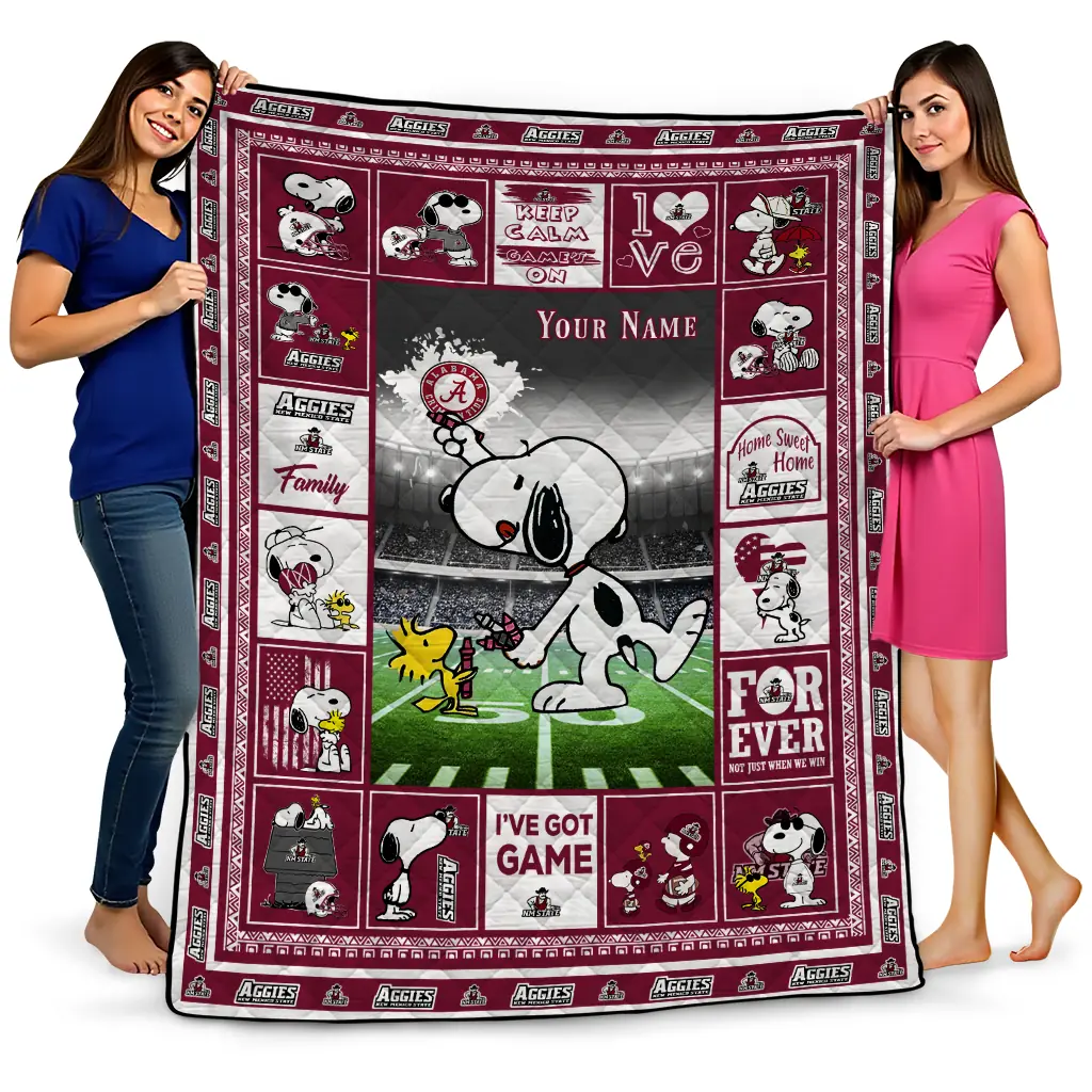 Personalized New Mexico State Aggies Snoopy Coach Crimson Quilt Blanket