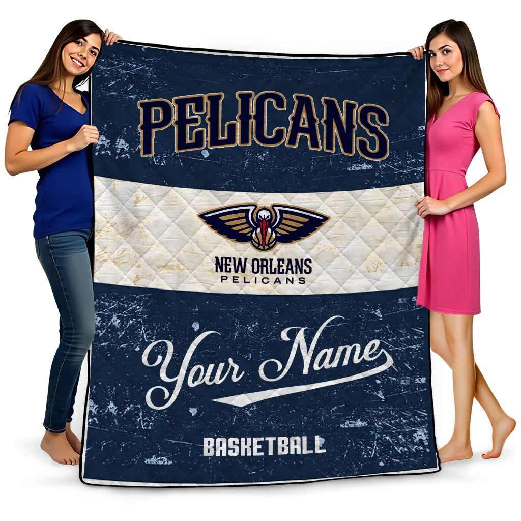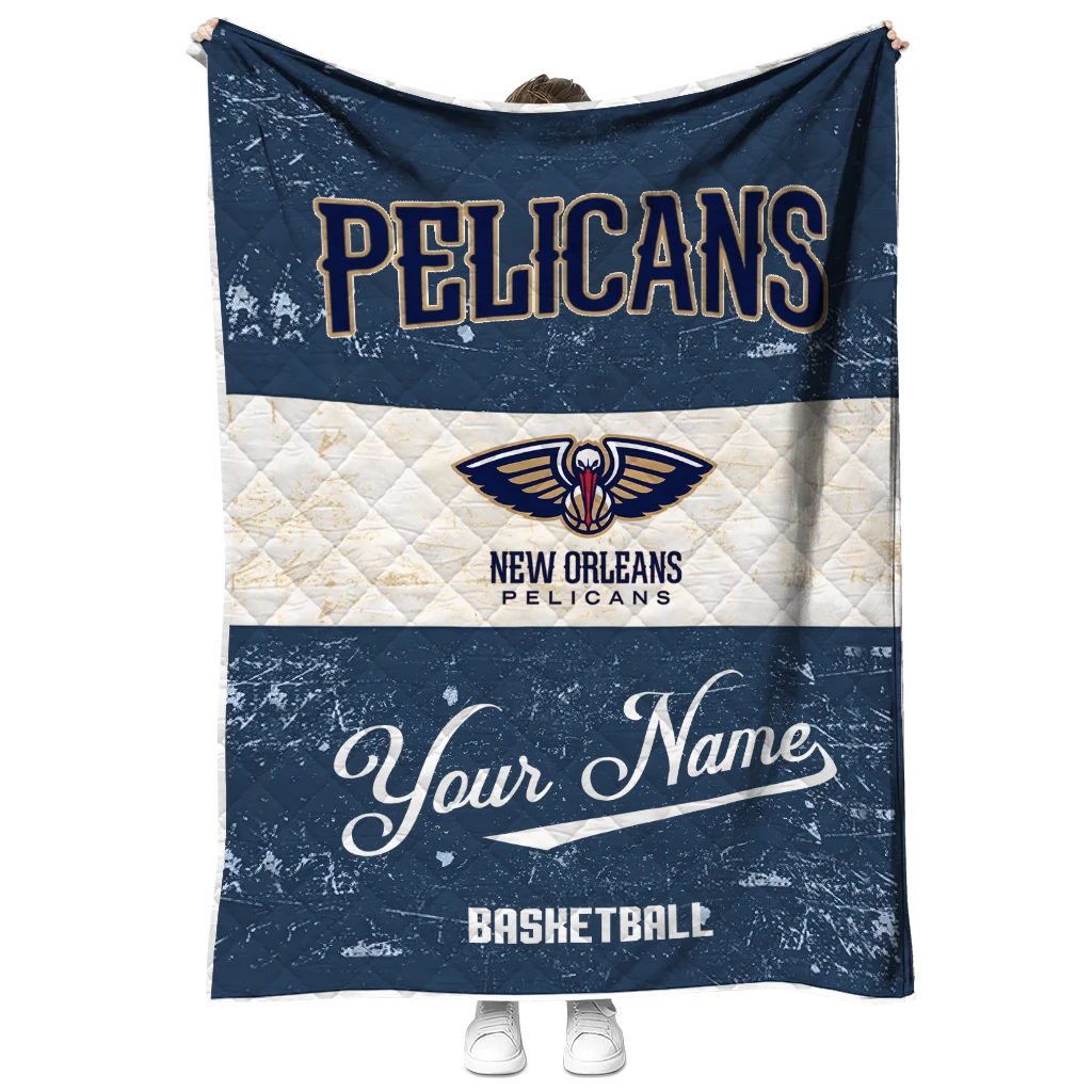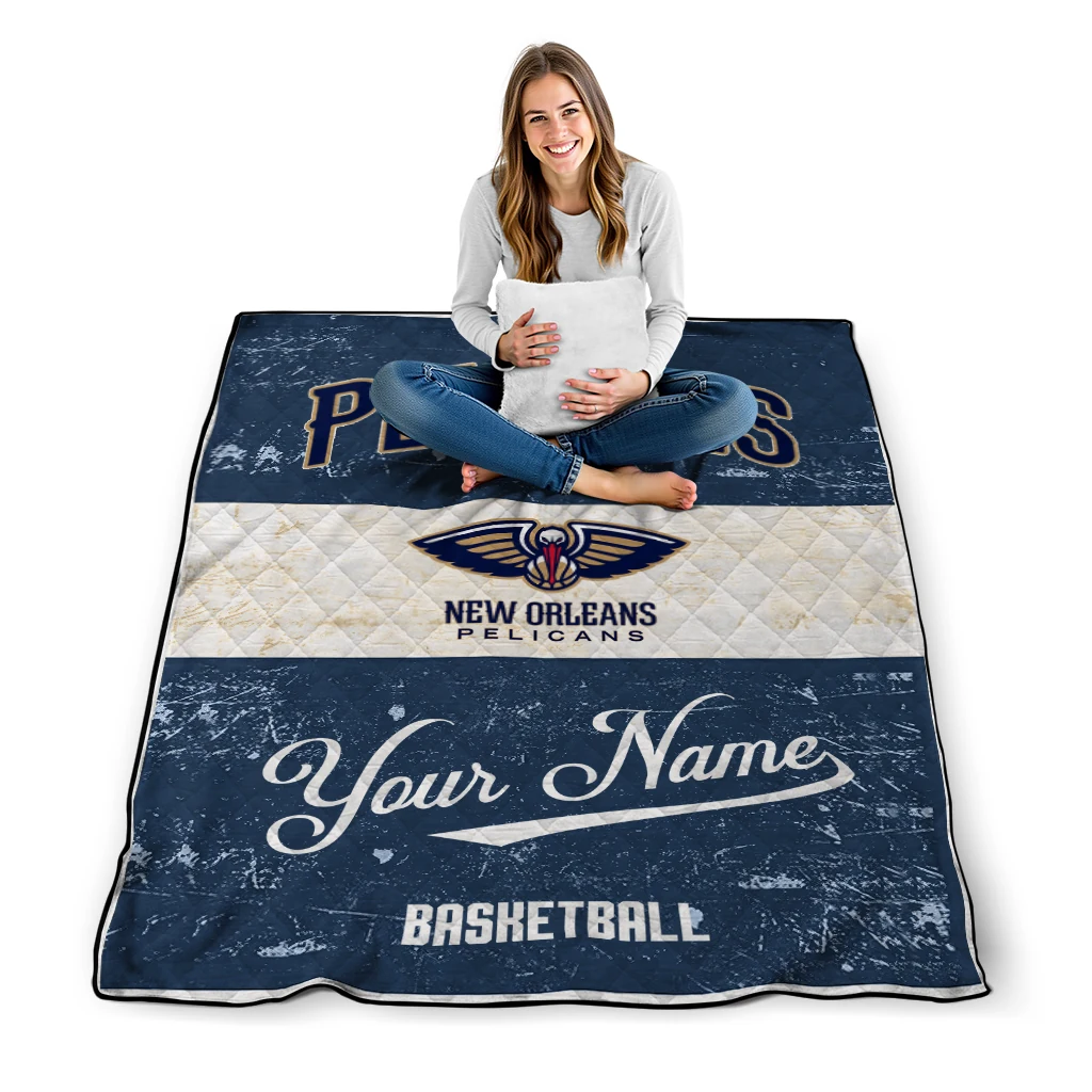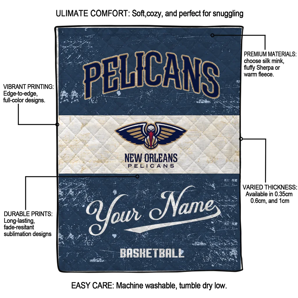 The Personalized New Orleans Pelicans Helmet Fan Navy White Quilt Blanket is more than a blanket—it’s everyday comfort, thoughtfully made. Crafted from premium quilting fabric with a soft microfiber touch, it offers a smooth hand-feel and lasting coziness. Layered quilting with a cotton-filled core provides adaptable warmth across seasons while maintaining a clean, tailored look on your bed or sofa.
