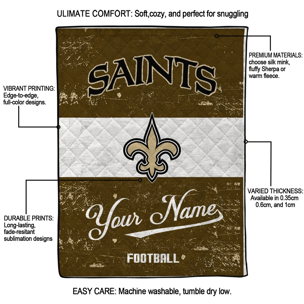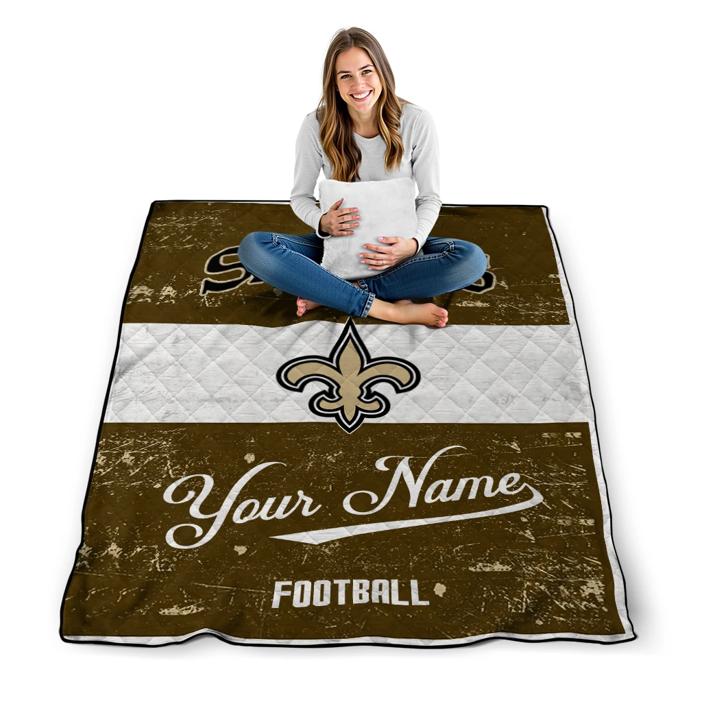 The Personalized New Orleans Saints Hibiscus Burst Gold White Quilt Blanket is more than a blanket—it’s everyday comfort, thoughtfully made. Crafted from premium quilting fabric with a soft microfiber touch, it offers a smooth hand-feel and lasting coziness. Layered quilting with a cotton-filled core provides adaptable warmth across seasons while maintaining a clean, tailored look on your bed or sofa.