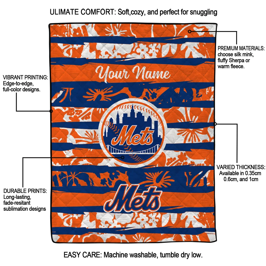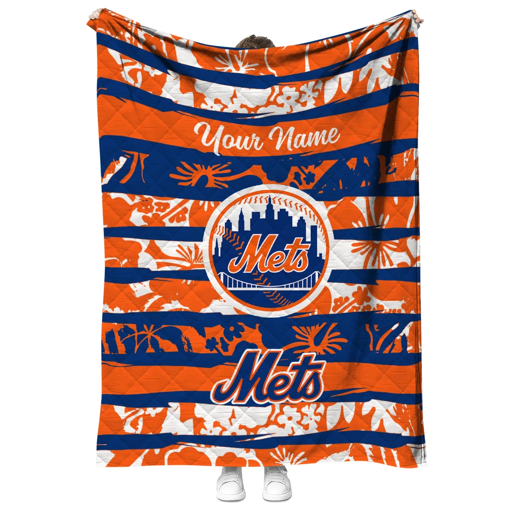 Wrap yourself in warmth and pride with the Personalized New York Mets Layered Florals Blue White Quilt Blanket from the New York Mets Blankets collection at Yes That Blanket. Made from 100% premium quilting-weight polyester blended with a touch of microfiber, this quilt offers a smooth, soft finish you’ll love. Choose between two quilting styles—Stipple or Diagonal—and enjoy the comfort of a cotton-filled layer inside that adds extra coziness for every season. The border is available in classic black or white, giving your design a clean, timeless edge.