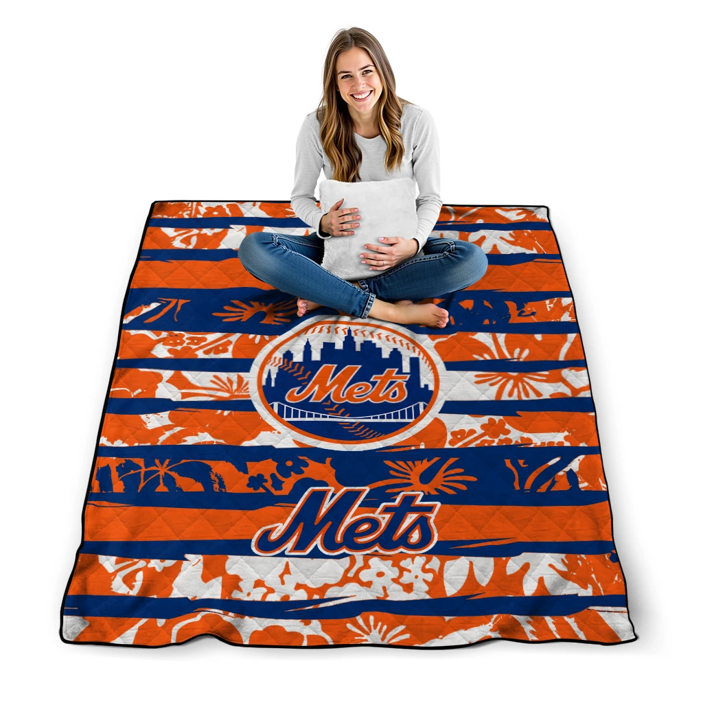 The Personalized New York Mets Layered Florals Blue White Quilt Blanket is more than a blanket—it’s everyday comfort, thoughtfully made. Crafted from premium quilting fabric with a soft microfiber touch, it offers a smooth hand-feel and lasting coziness. Layered quilting with a cotton-filled core provides adaptable warmth across seasons while maintaining a clean, tailored look on your bed or sofa.