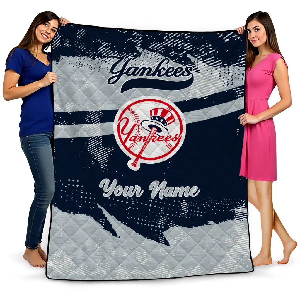 Personalized New York Yankees Brushstroke Layers Navy Quilt Blanket