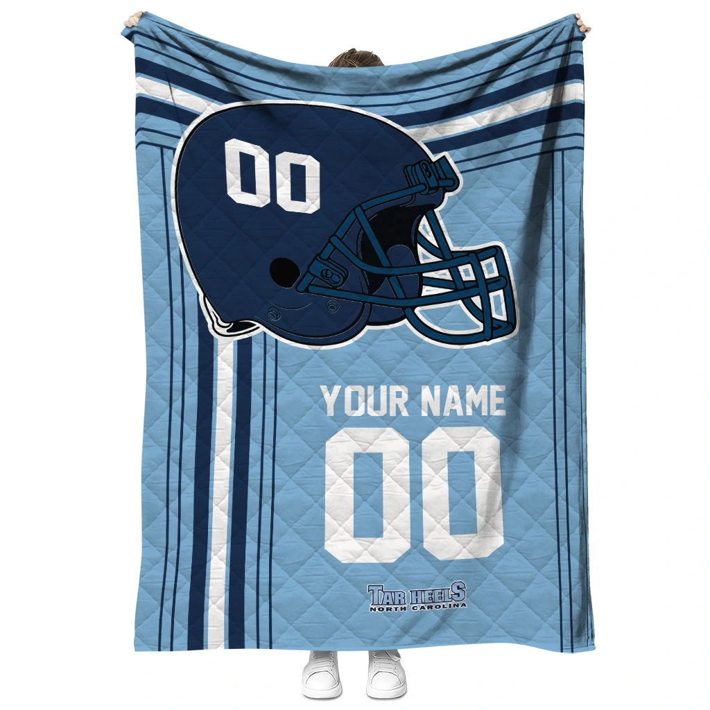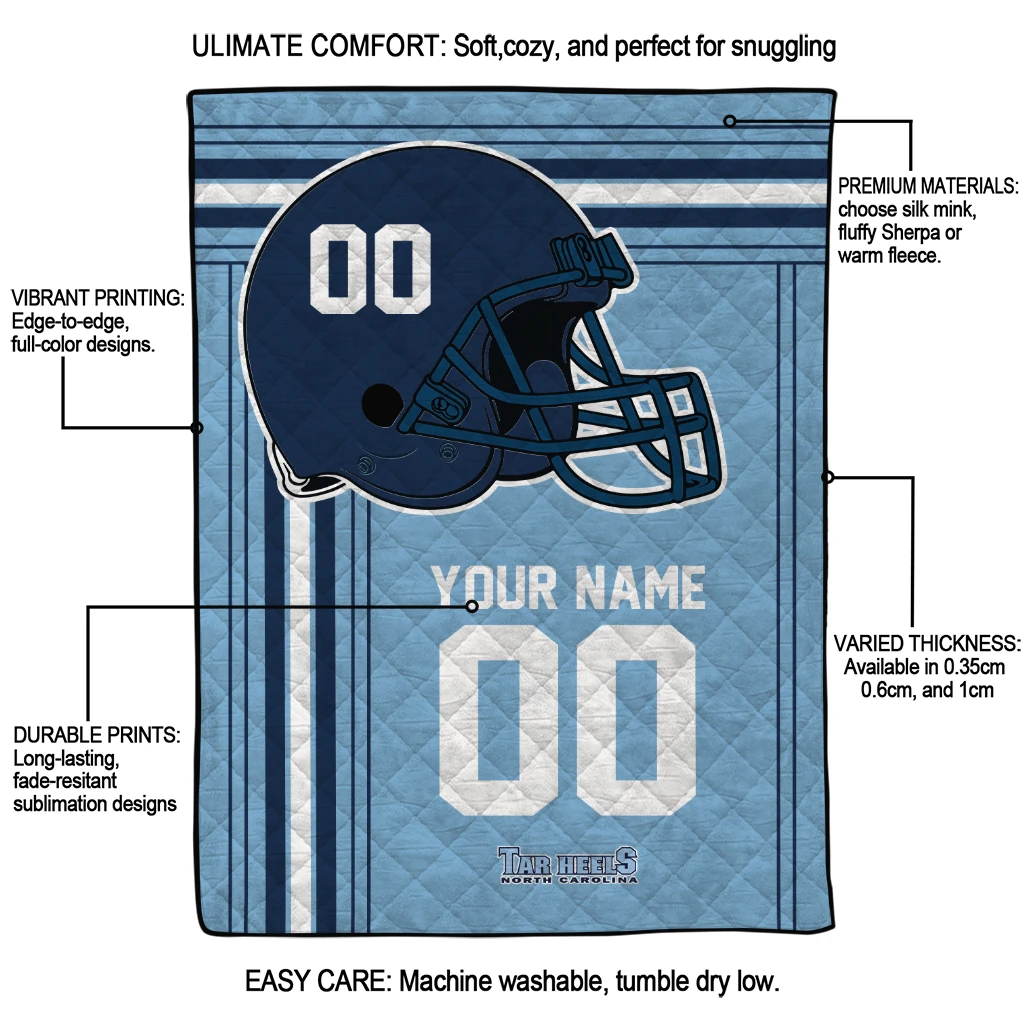 Personalized North Carolina Tar Heels Helmet Theme Light Blue Quilt Blanket