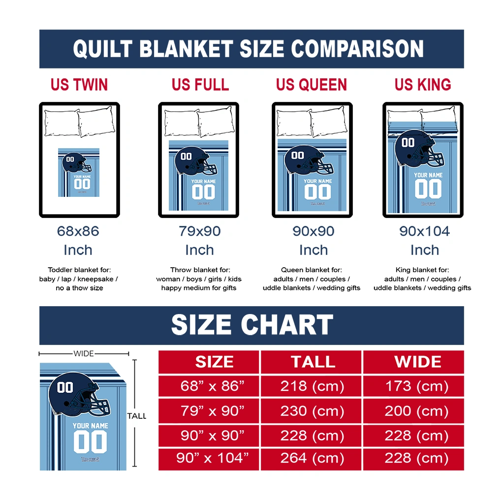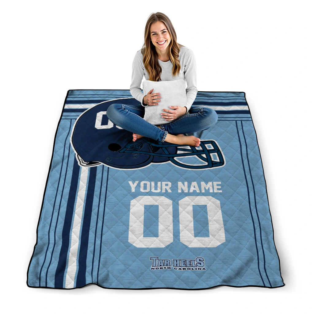 The Personalized North Carolina Tar Heels Helmet Theme Light Blue Quilt Blanket is more than a blanket—it’s everyday comfort, thoughtfully made. Crafted from premium quilting fabric with a soft microfiber touch, it offers a smooth hand-feel and lasting coziness. Layered quilting with a cotton-filled core provides adaptable warmth across seasons while maintaining a clean, tailored look on your bed or sofa.