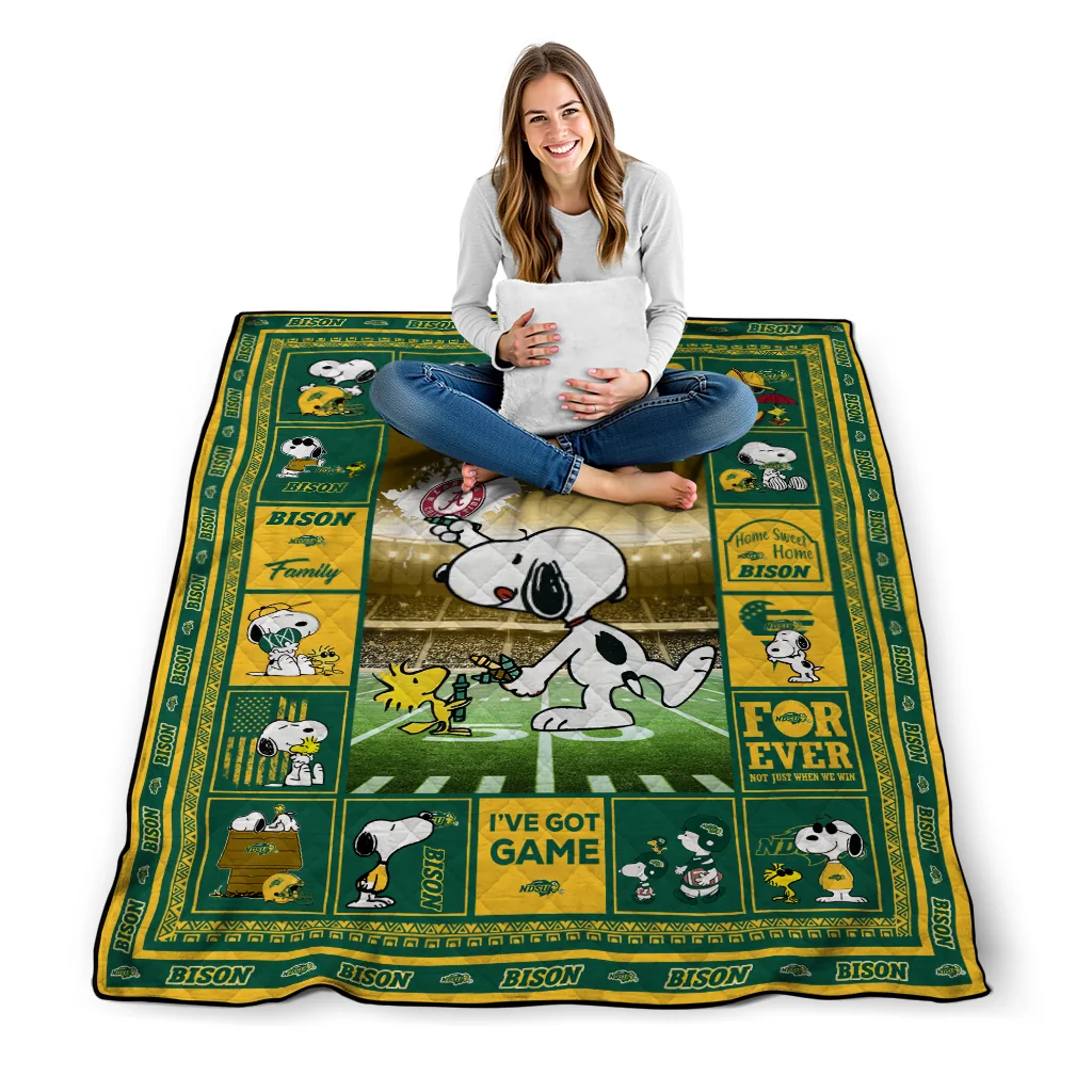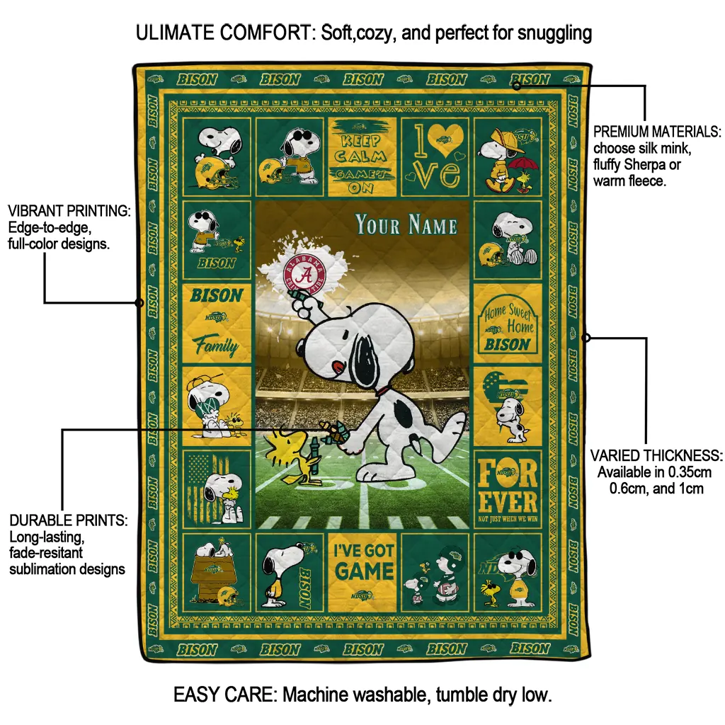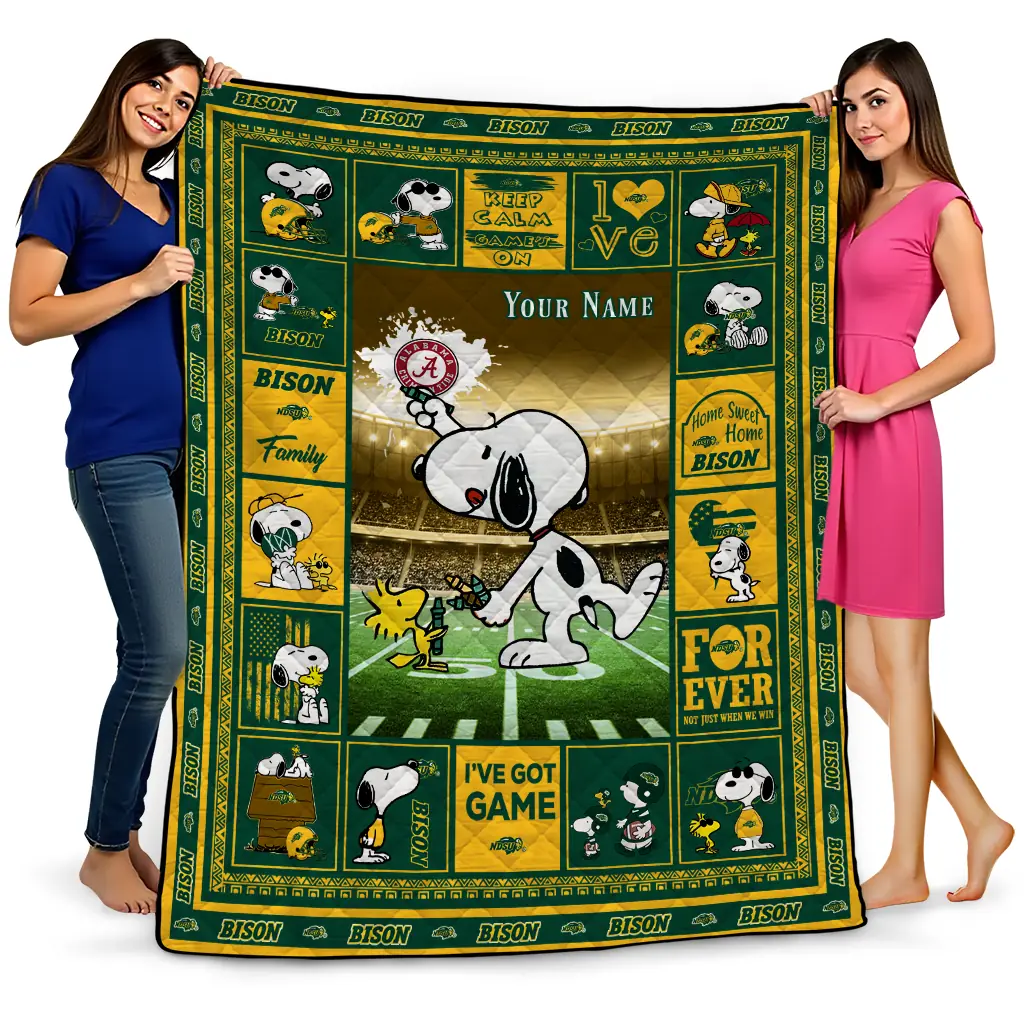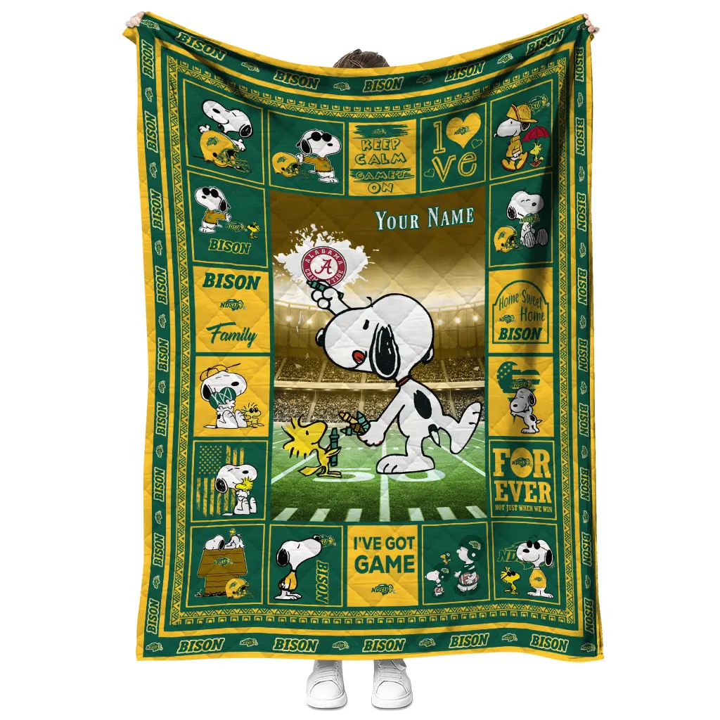 Personalized North Dakota State Bison Snoopy Coach Green Quilt Blanket