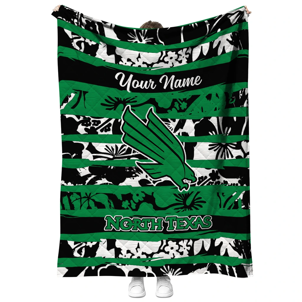 Personalized North Texas Mean Green Layered Florals Green White Quilt Blanket
