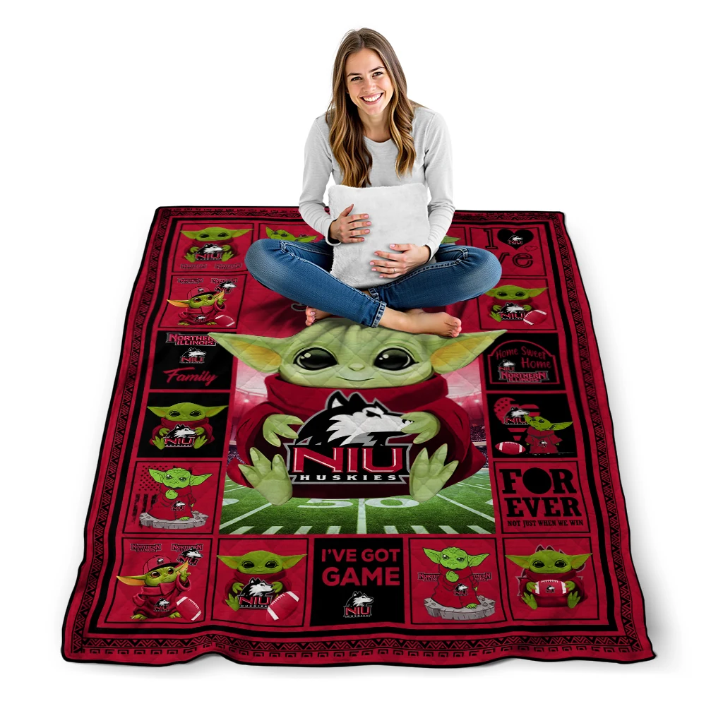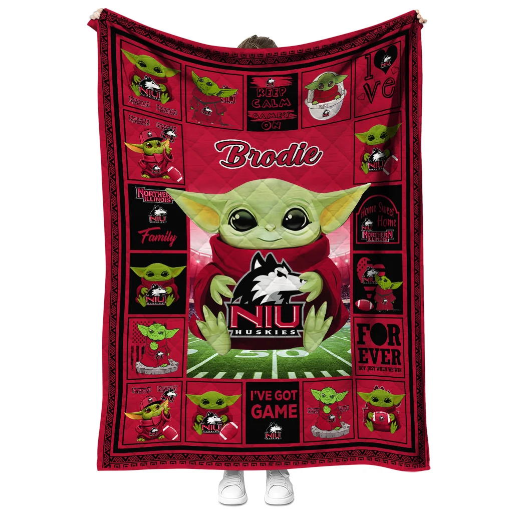 Personalized Northern Illinois Huskies Yody Baby Pattern Red Quilt Blanket