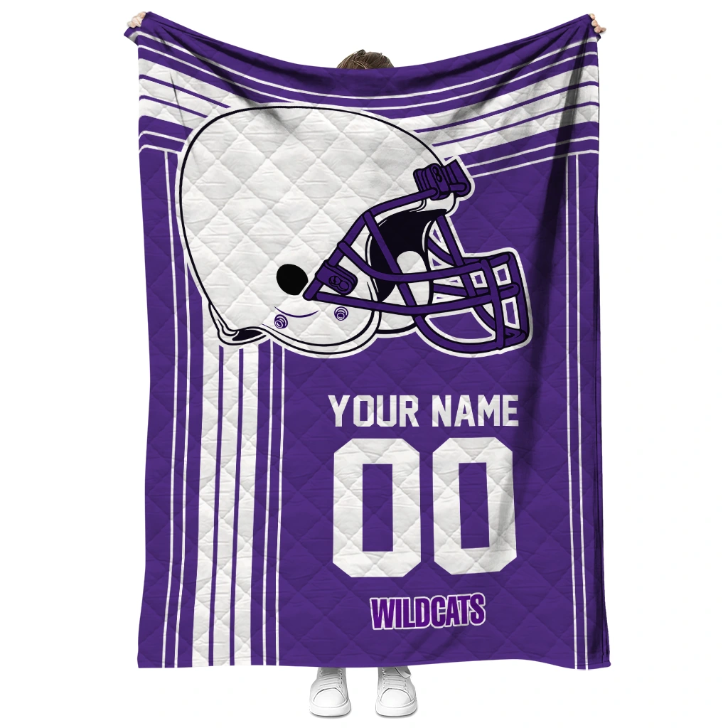 Personalized Northwestern Wildcats Helmet Theme Purple Quilt Blanket