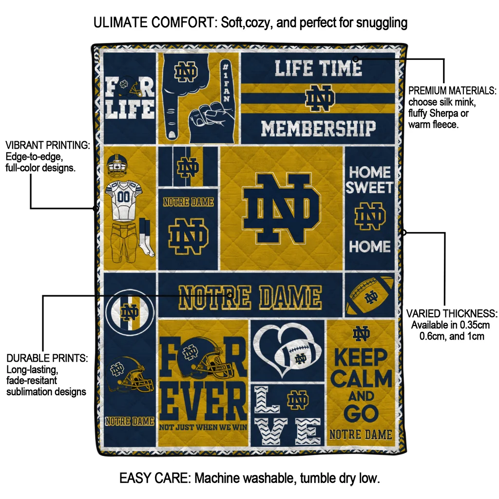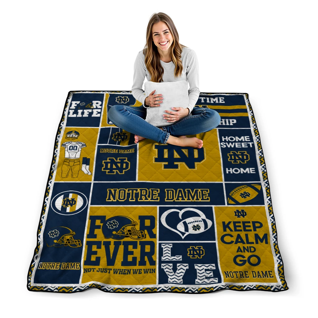 The Personalized Notre Dame Fighting Irish Helmet Passion Navy Quilt Blanket is more than a blanket—it’s everyday comfort, thoughtfully made. Crafted from premium quilting fabric with a soft microfiber touch, it offers a smooth hand-feel and lasting coziness. Layered quilting with a cotton-filled core provides adaptable warmth across seasons while maintaining a clean, tailored look on your bed or sofa.