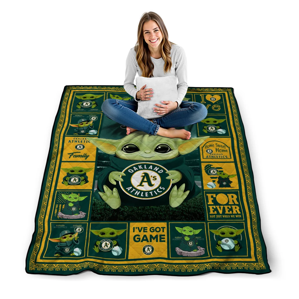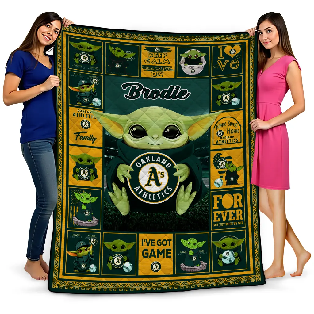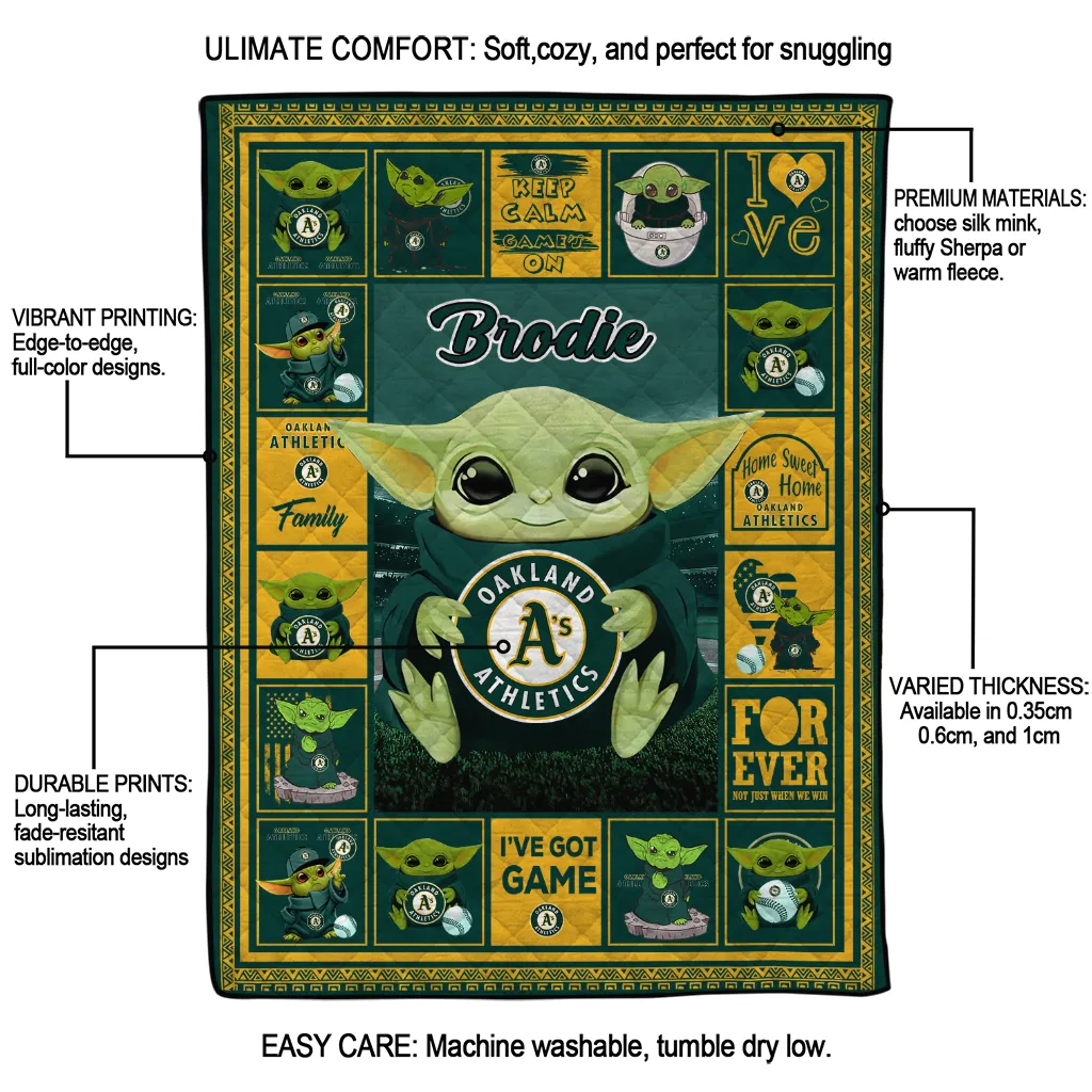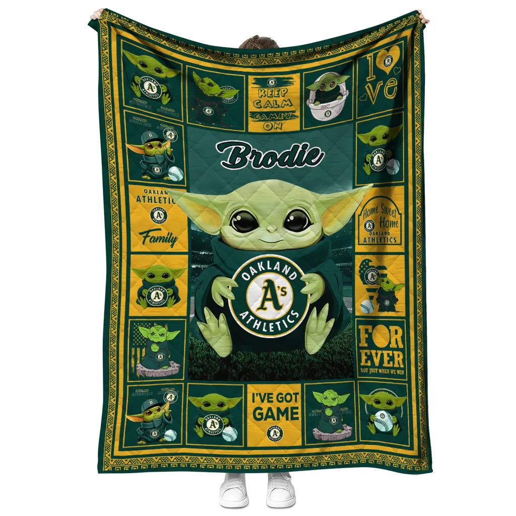 Personalized Oakland Athletics Yody Baby Motif Green Quilt Blanket