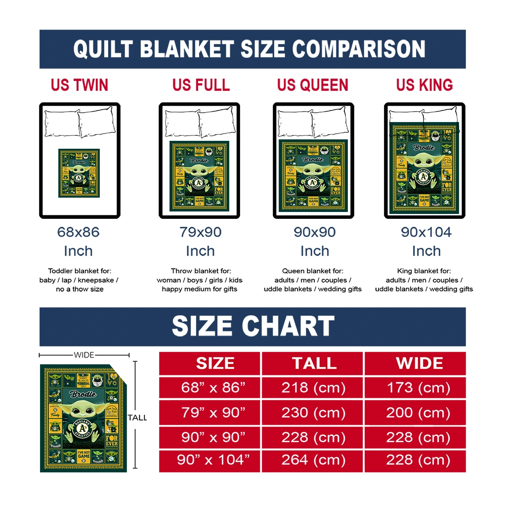 Wrap yourself in warmth and pride with the Personalized Oakland Athletics Yody Baby Motif Green Quilt Blanket from the Oakland Athletics Blankets collection at Yes That Blanket. Made from 100% premium quilting-weight polyester blended with a touch of microfiber, this quilt offers a smooth, soft finish you’ll love. Choose between two quilting styles—Stipple or Diagonal—and enjoy the comfort of a cotton-filled layer inside that adds extra coziness for every season. The border is available in classic black or white, giving your design a clean, timeless edge.